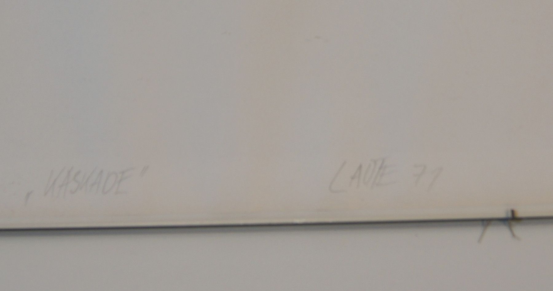 Siebdruck von 1971. Signiert: Laute 10 10. Motiv: Kaskade . Maße: H 60, B 80 cm. Das Blatt kommt in einer Rolle! Antikes am Deich - Inh: Oliver Kipp-Trense