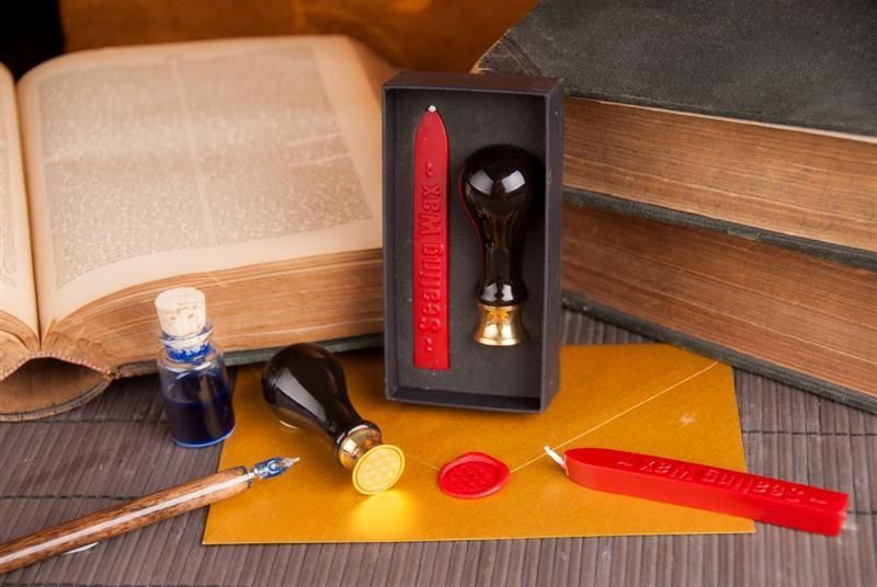 Siegel-Set BLUME DES LEBENS Stempel + Siegelwachs rot Geschenkset Petschaft
