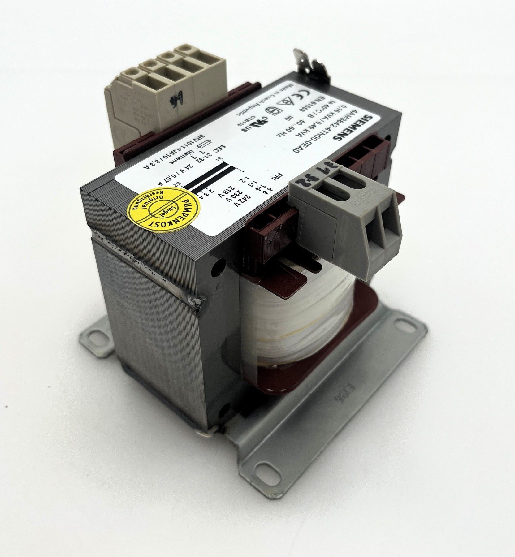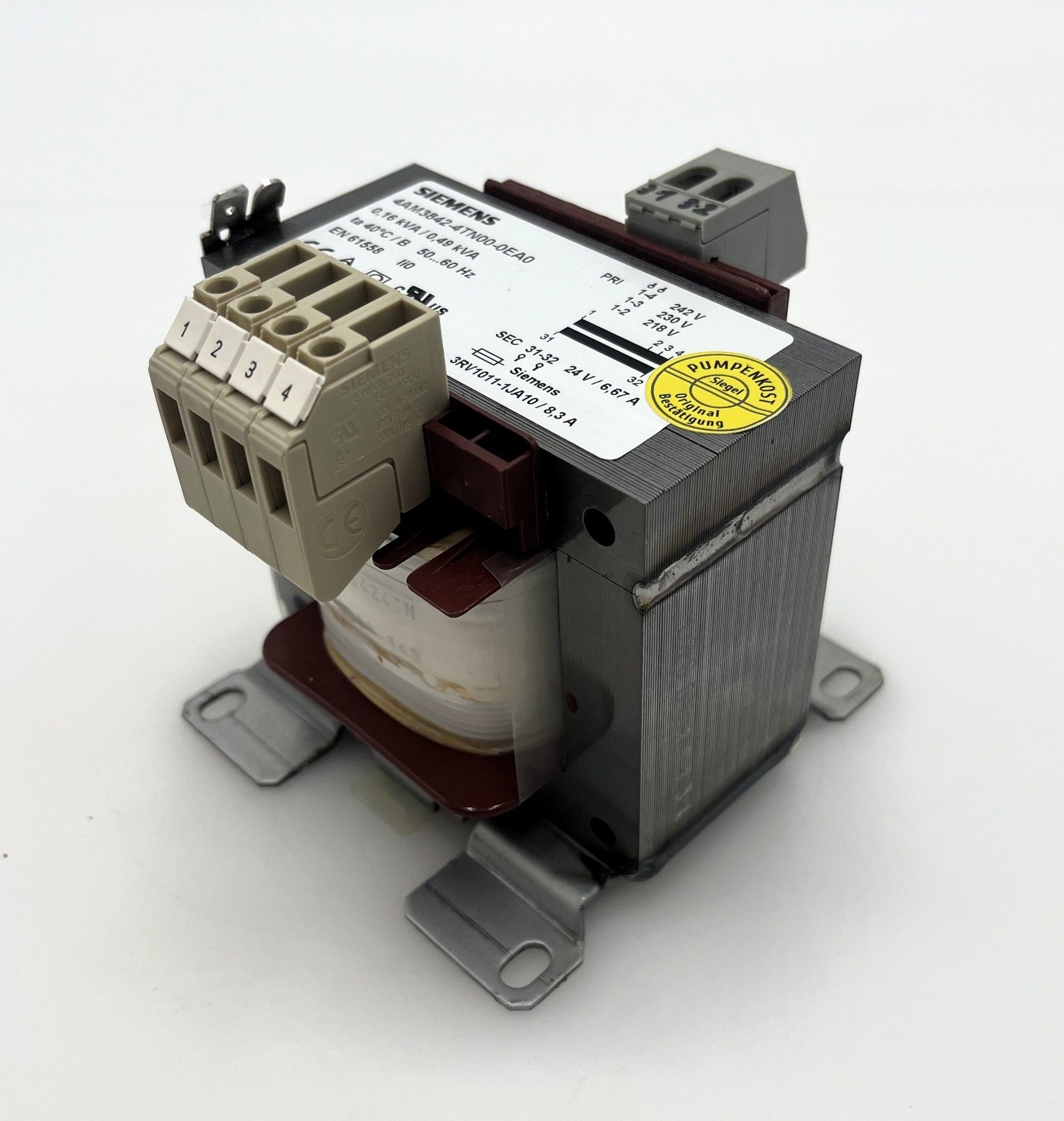 Siemens 4AM3842-4TN00-0EA0 Transformator Primär 218, 230, 242 V Sekundär 24 V 6,67 A 160, 490 VA Gewicht: 2,60 kg Maße LxBxH: 95x100x100 mm Zustand: neuwertig Unsere Artikelnummer: T10 188 Sicherheitsprüfung nach VDE durchgeführt Sie erhalten eine Rechnung mit absetzbarer MwSt. Sie finden nicht glei