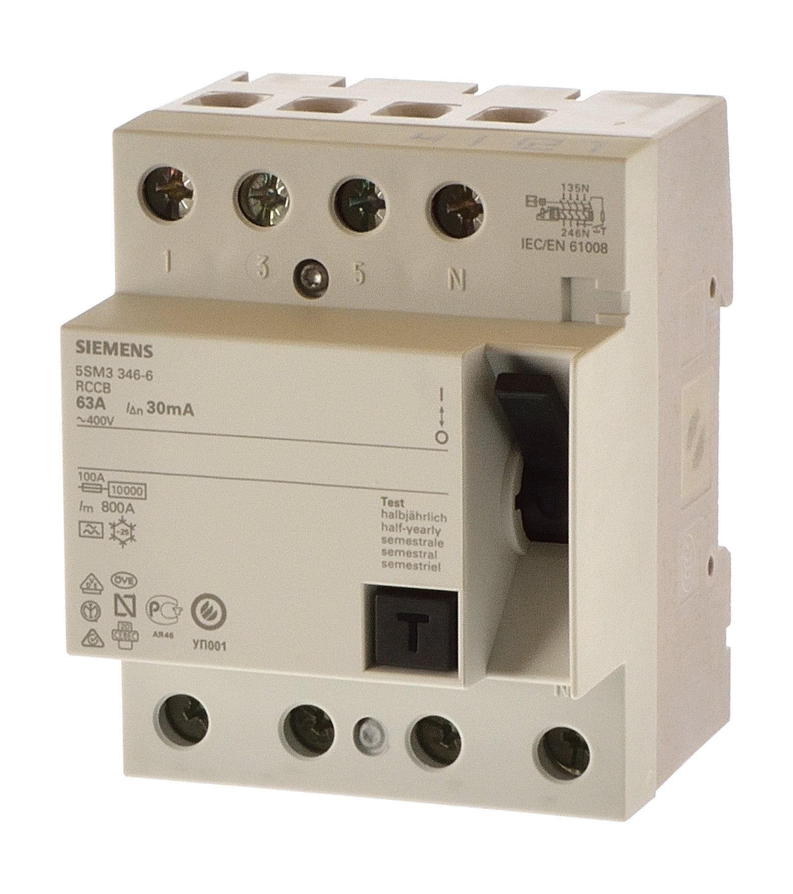 Siemens 5SM3346-4 Fi 63A 0,03A Fi Schalter Allstromsensitiv 30mA