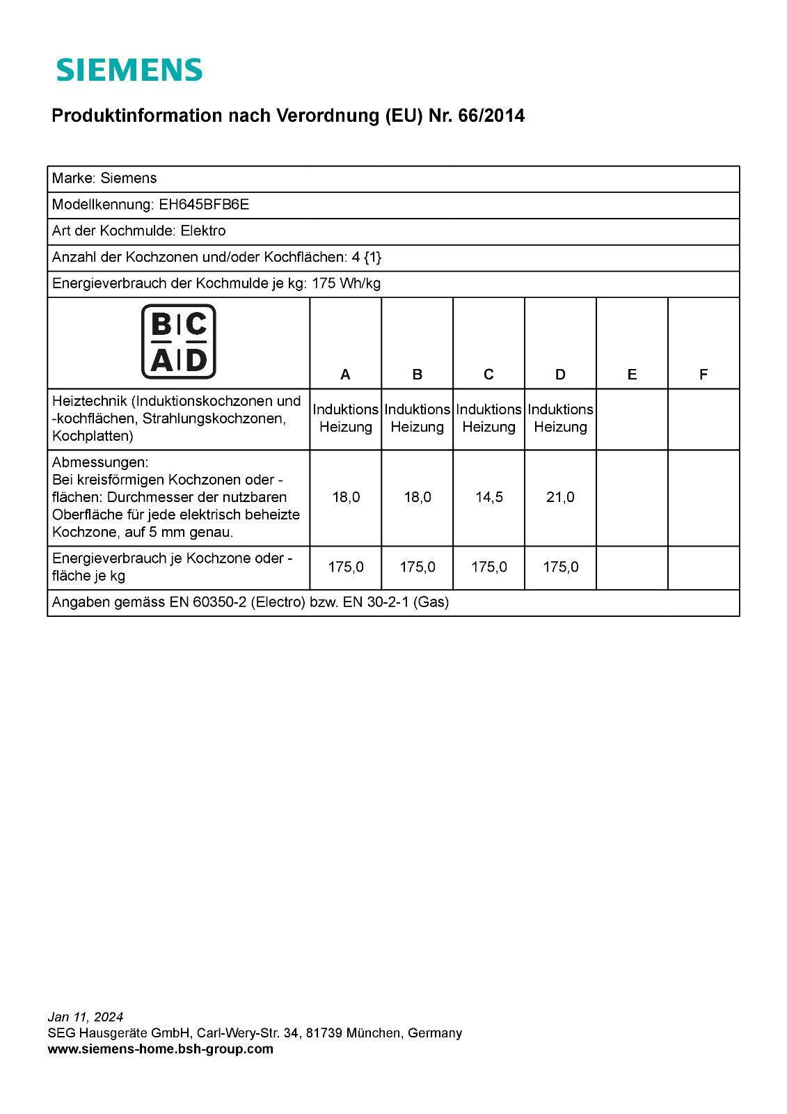 Siemens Siemens EH645BFB6E, Induktionskochfeld autark 60cm Schwarz, Mit Rahmen aufliegend