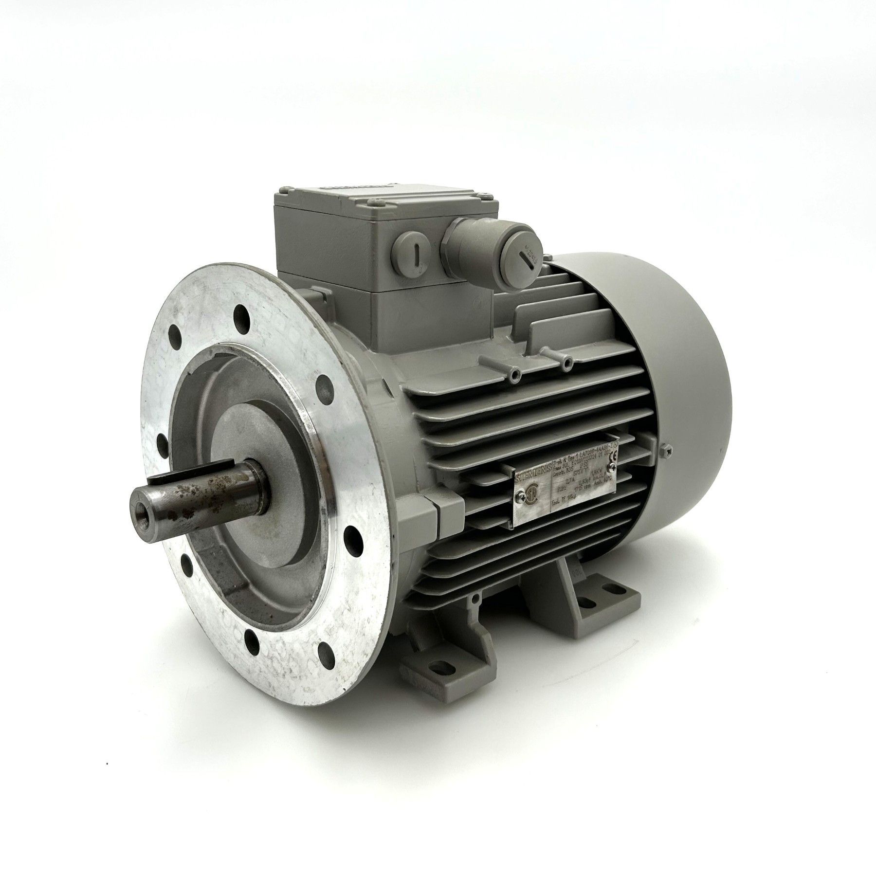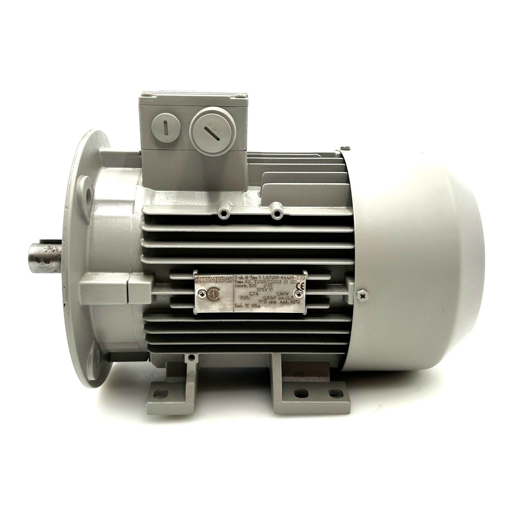 Siemens Elektromotor Typ 1LA7096-4AA96-Z Technische Daten: Spannung: 3 × 575 V (Sternschaltung) Leistung: 1,8 kW Frequenz: 60 Hz Drehzahl: 1715 U min Leistungsfaktor (cos φ): 0,83 Bauform: B35 (Flansch- und Fußmontage) Schutzart: IP55 Umgebungstemperatur: max. 40 °C Gewicht: ca. 16 kg