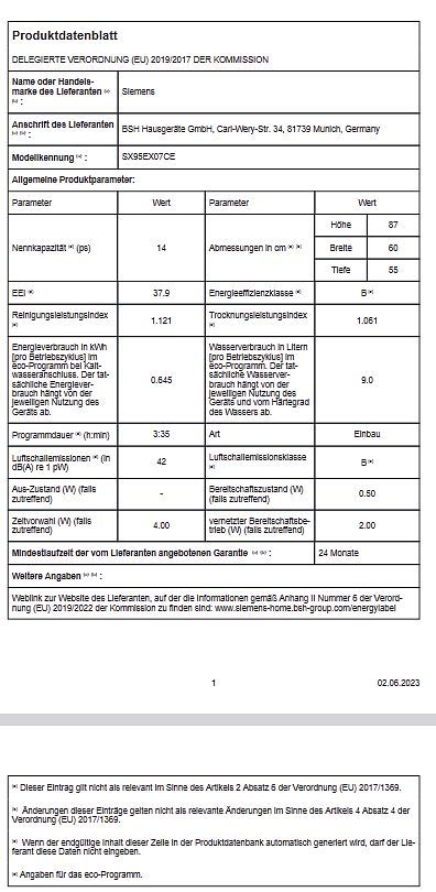Siemens Siemens, iQ500, SX95EX07CE, Vollintegrierter Geschirrspüler 60 cm , XXL , EEK: B