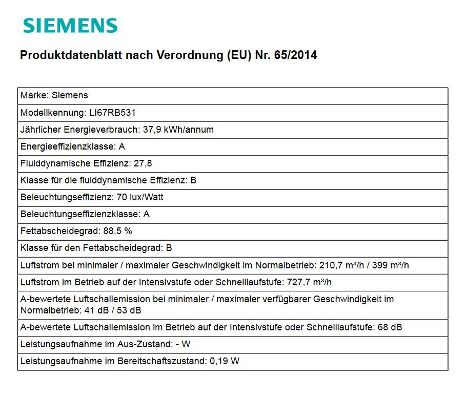 Siemens Siemens LI67RB531 Flachschirmhaube 60 cm Silbermetallic, EEK: A