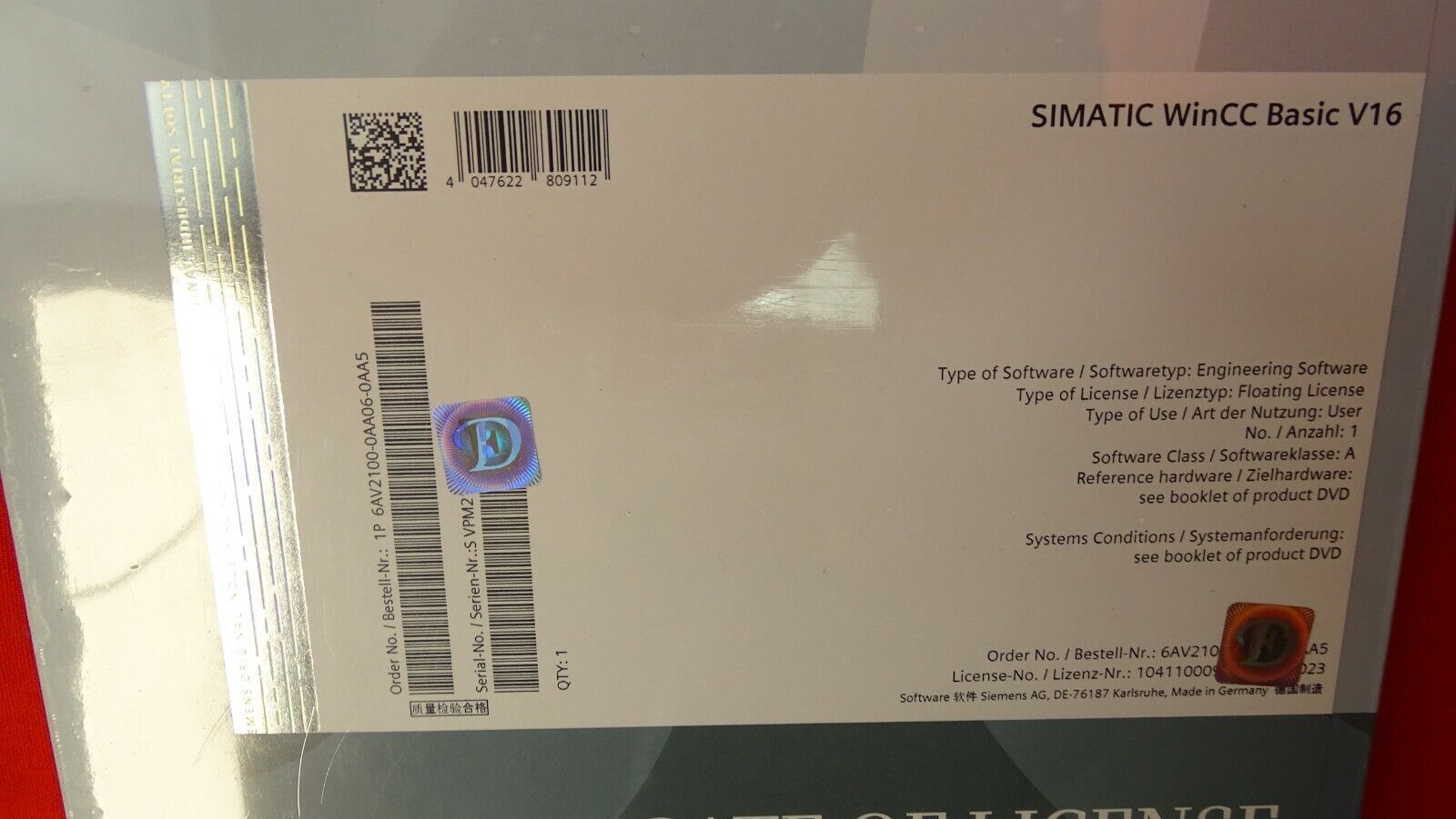 Siemens Simatic WinCC Basic V16 Visualisierungs-Software 6AV2100-0AA06-0AA5