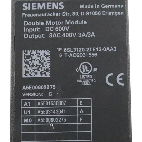Siemens Sinamics Double Motor Modul 6SL3120-2TE13-0AA3 (gebraucht) Weitere Details und Bilder auf Anfrage. Gerät kommt aus der Industrie, wurde getestet und ist voll funktionsfähig. Die Ware wird ausschließlich als Gebrauchtware und Ersatzteilspender, unter Ausschluss jeglicher Gewährleistung und oh... Mehr