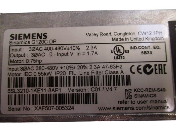 Siemens Sinamics G120C Profibus-DP 6SL3210-1KE11-8AP1 (gebraucht) Weitere Details und Bilder auf Anfrage. Gerät kommt aus der Industrie, wurde getestet und ist voll funktionsfähig. Die Ware wird ausschließlich als Gebrauchtware und Ersatzteilspender, unter Ausschluss jeglicher Gewährleistung und ohn... Mehr