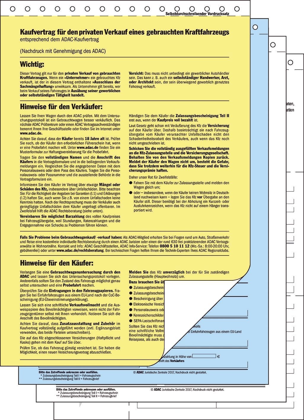 sigel Sigel® KV440 Kaufvertrag für gebrauchtes Kfz offizieller ADAC-Vordruck A4 4 Blatt