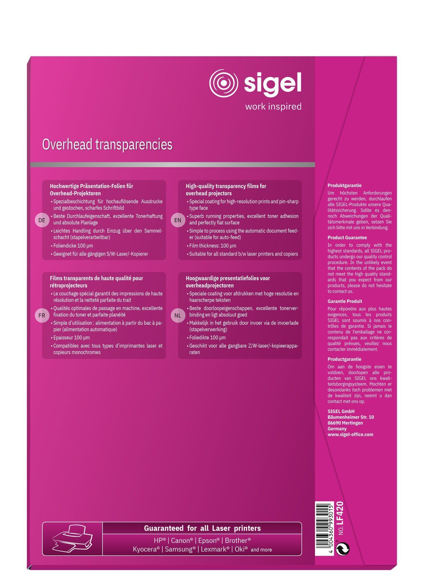 Sigel Sigel S/W Laser-Kopierfolie A4 50Bl LF420