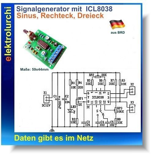 Signalgenerator Sinus Rechteck Dreieck mit ICL8038 komplett bestückt,1St