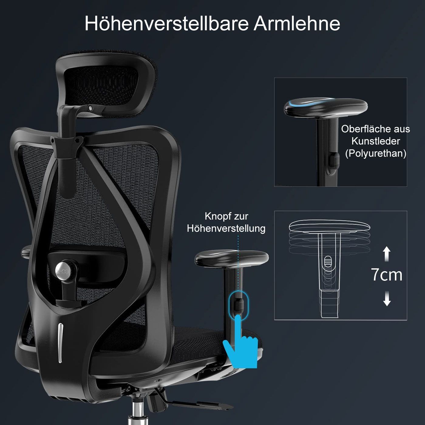 SIHOO Bürostuhl, ergonomisch, verstellbare Lordosenstütze, 150kg belastbar