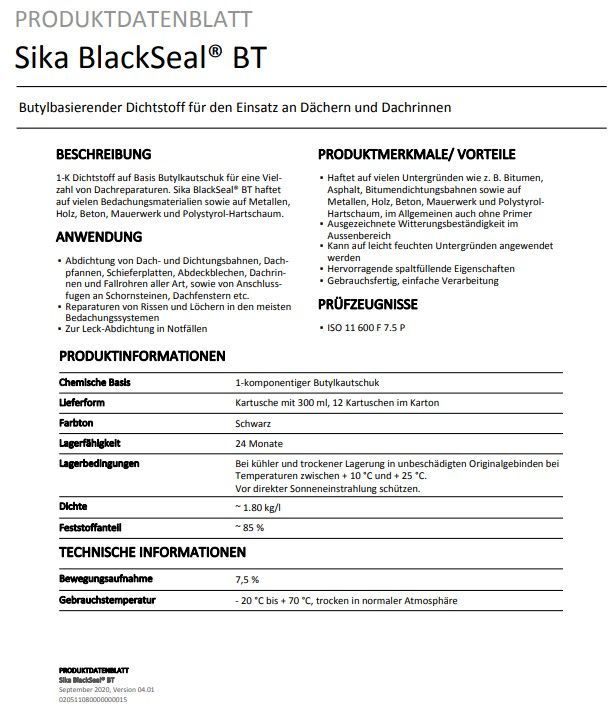 Sika BlackSeal® BT - 300ml Kartusche Dichtstoff Klebestoff für Dächer Rinnen