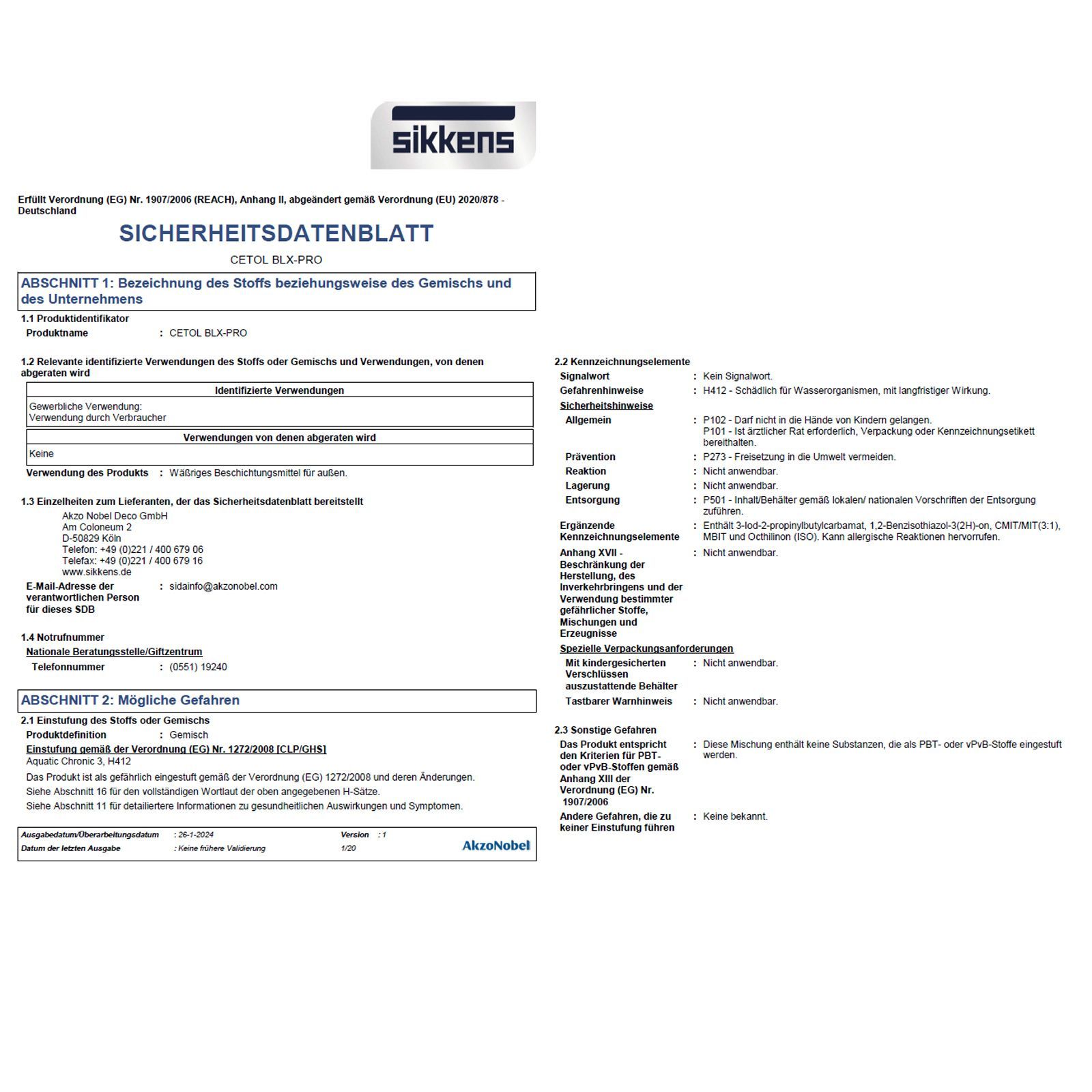 Sikkens CETOL BLX-PRO 1 LTR Dünnschichtlasur Holzlasur Holzschutzlasur Farbwahl