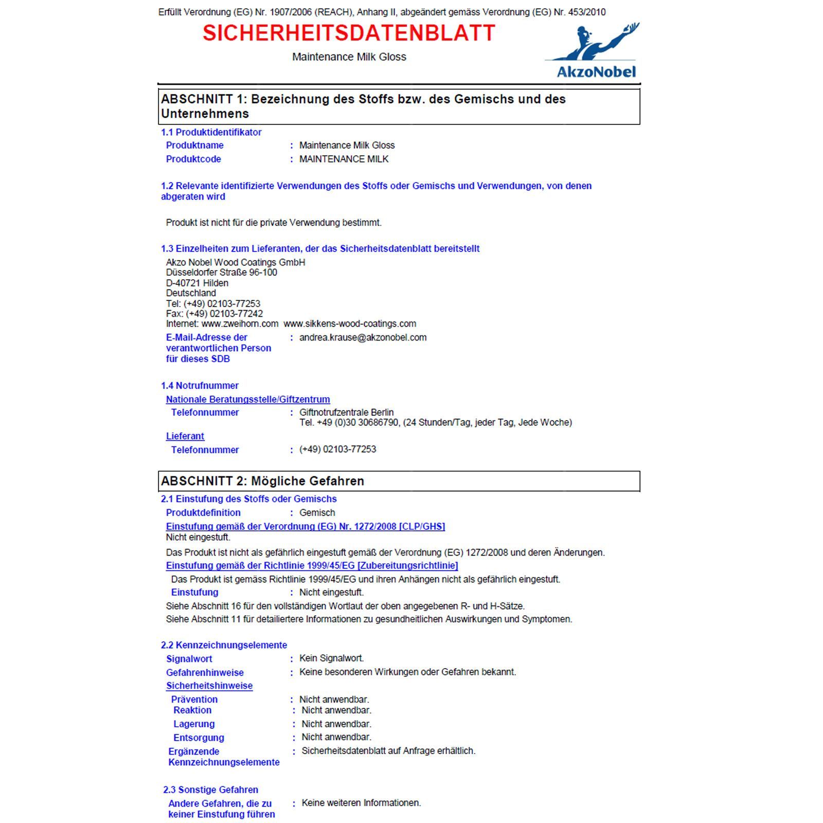 Sikkens Maintenance MILK GLOSS WV 802 0.25 LTR Pflegemilch Glänzend Holzfenster