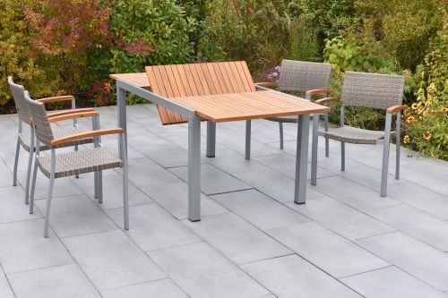 Silano Gartenmöbel Set 5tlg., 4 Stapelsessel, Ausziehtisch 150 (200) x 90 cm, Alu/Kun