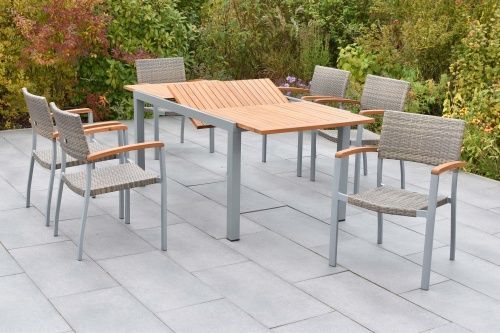 Silano Gartenmöbel Set 7tlg., 6 Stapelsessel, Ausziehtisch 150 (200) x 90 cm, Alu/Kun