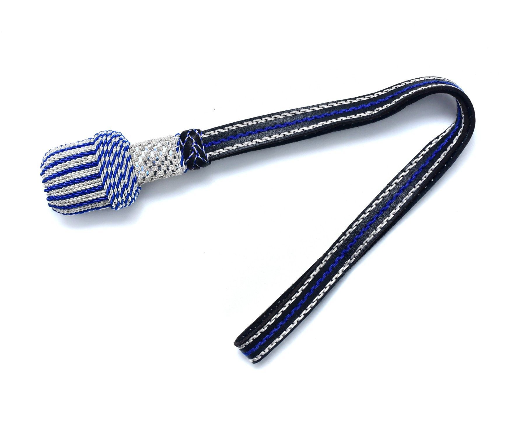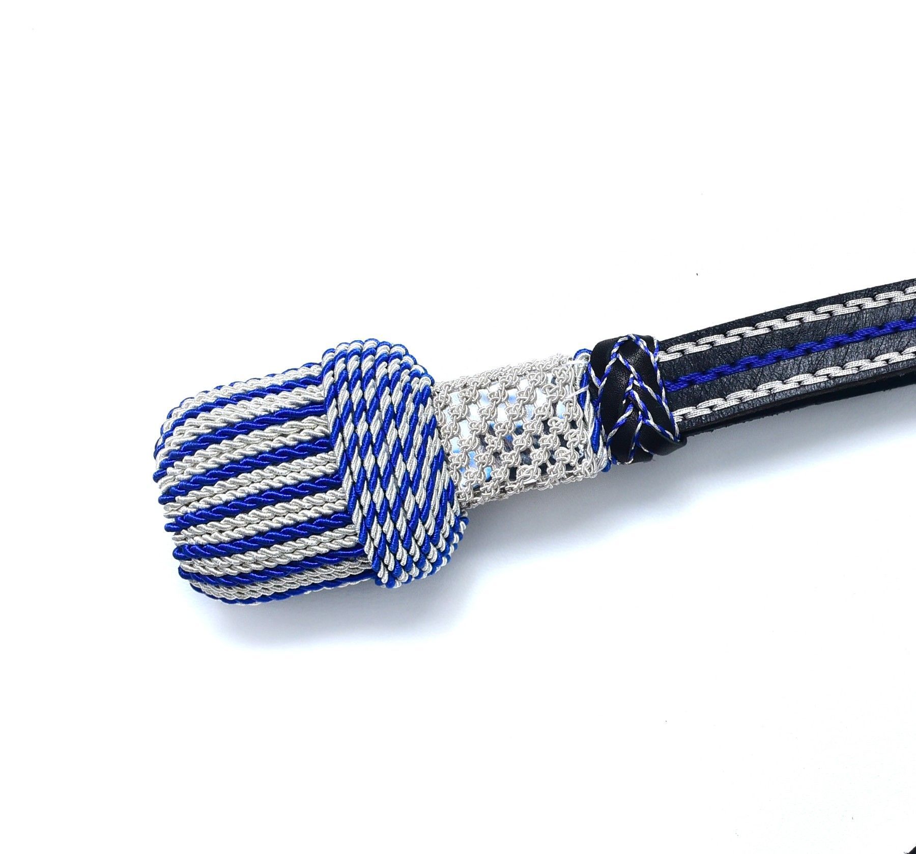 silber/blau Portepee mit Lederriemen Knot - ovale Quaste (grosse Ausführung)