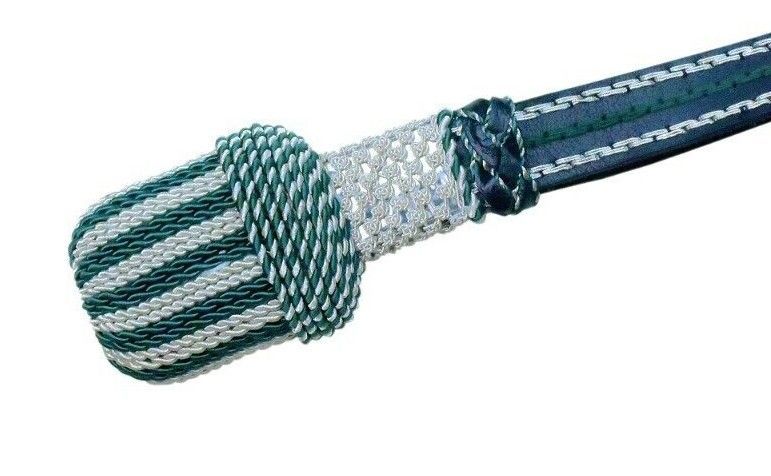silber/grün Portepee mit Lederriemen Knot - ovale Quaste (grosse Ausführung) Knot