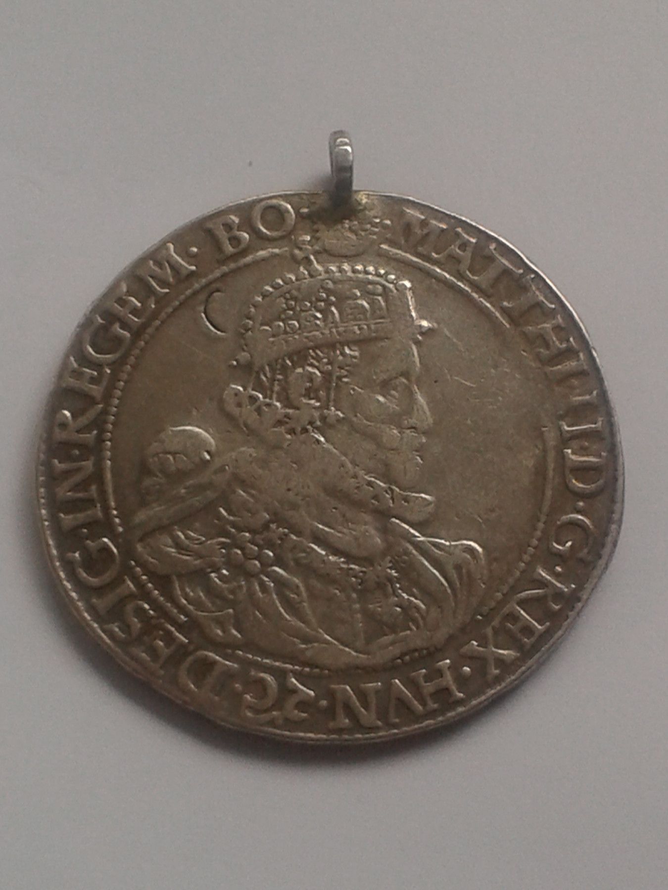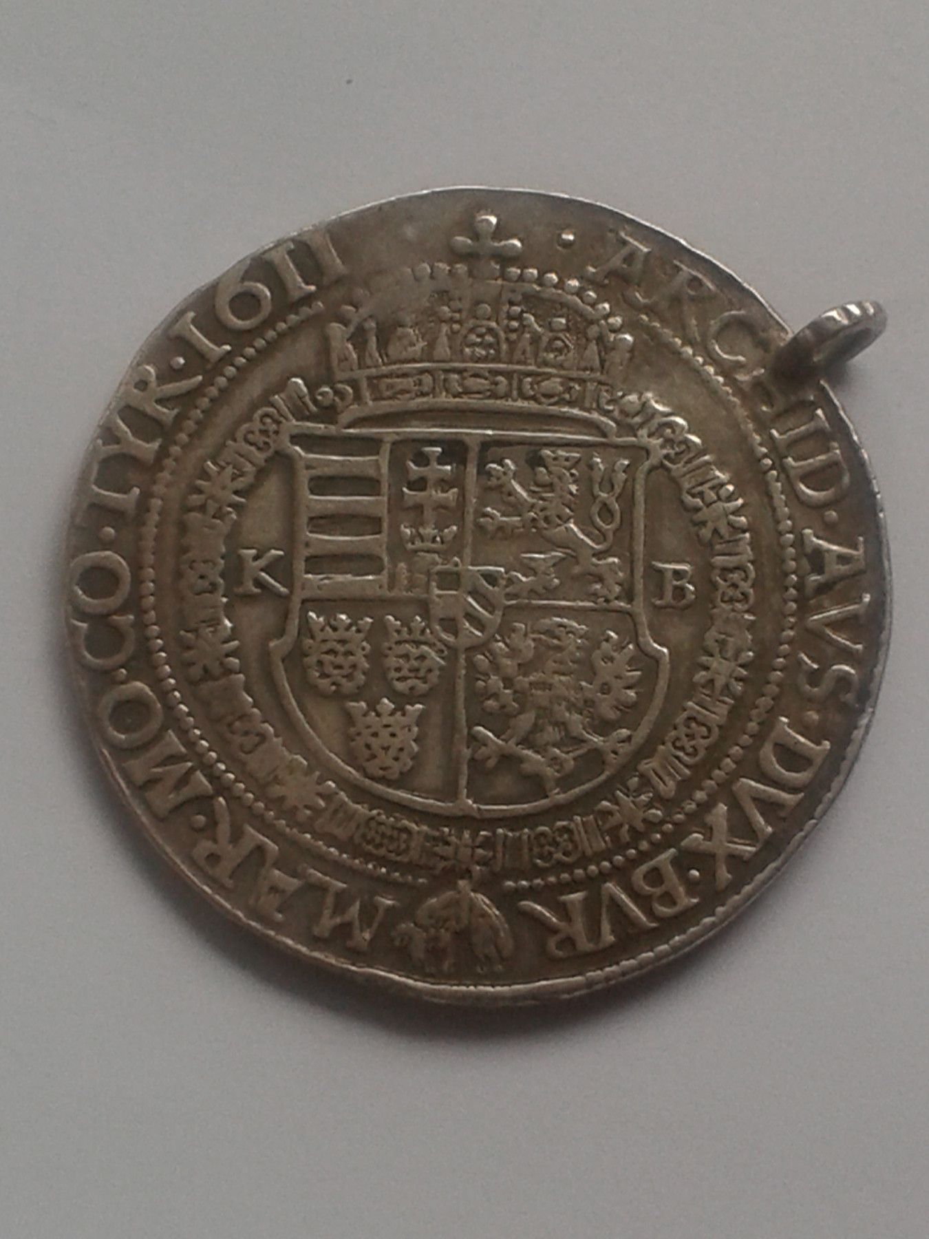 Silber Reichstaler Taler 1611 Kremnitz RDR Habsburg Kaiser Matthias II. 1608-1612-19 Matthias II. mit ungarischer Krone und beheltem Wappen, 28,01g Silber Originalmünze mit altem Henkel bei Fragen: