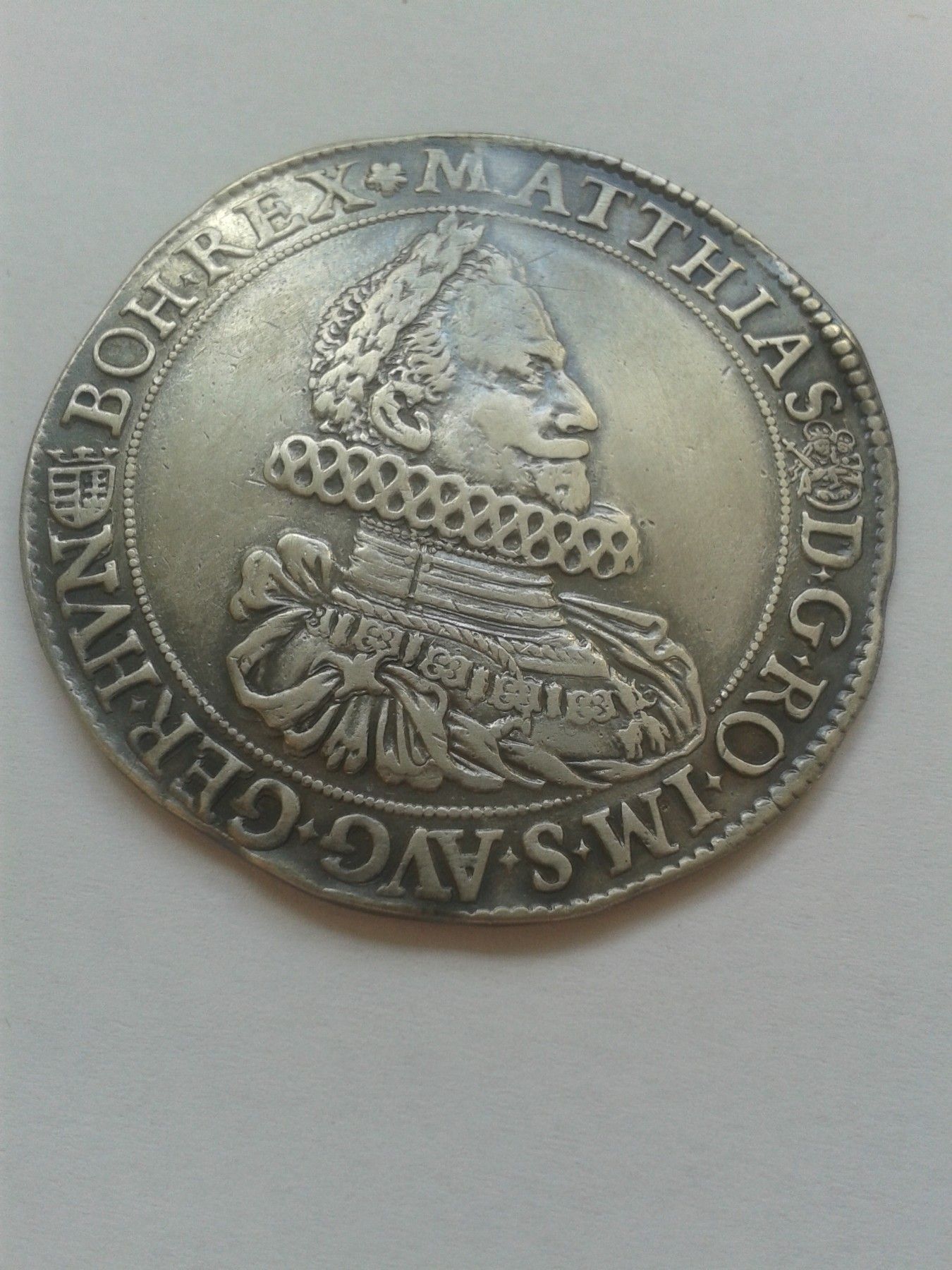 Silber Reichstaler Taler RDR 1618 KB Kremnitz Kaiser Matthias II. 1612-19 Matthias II. mit ungarischer Krone und beheltem Wappen... Originalmünze bei Fragen: