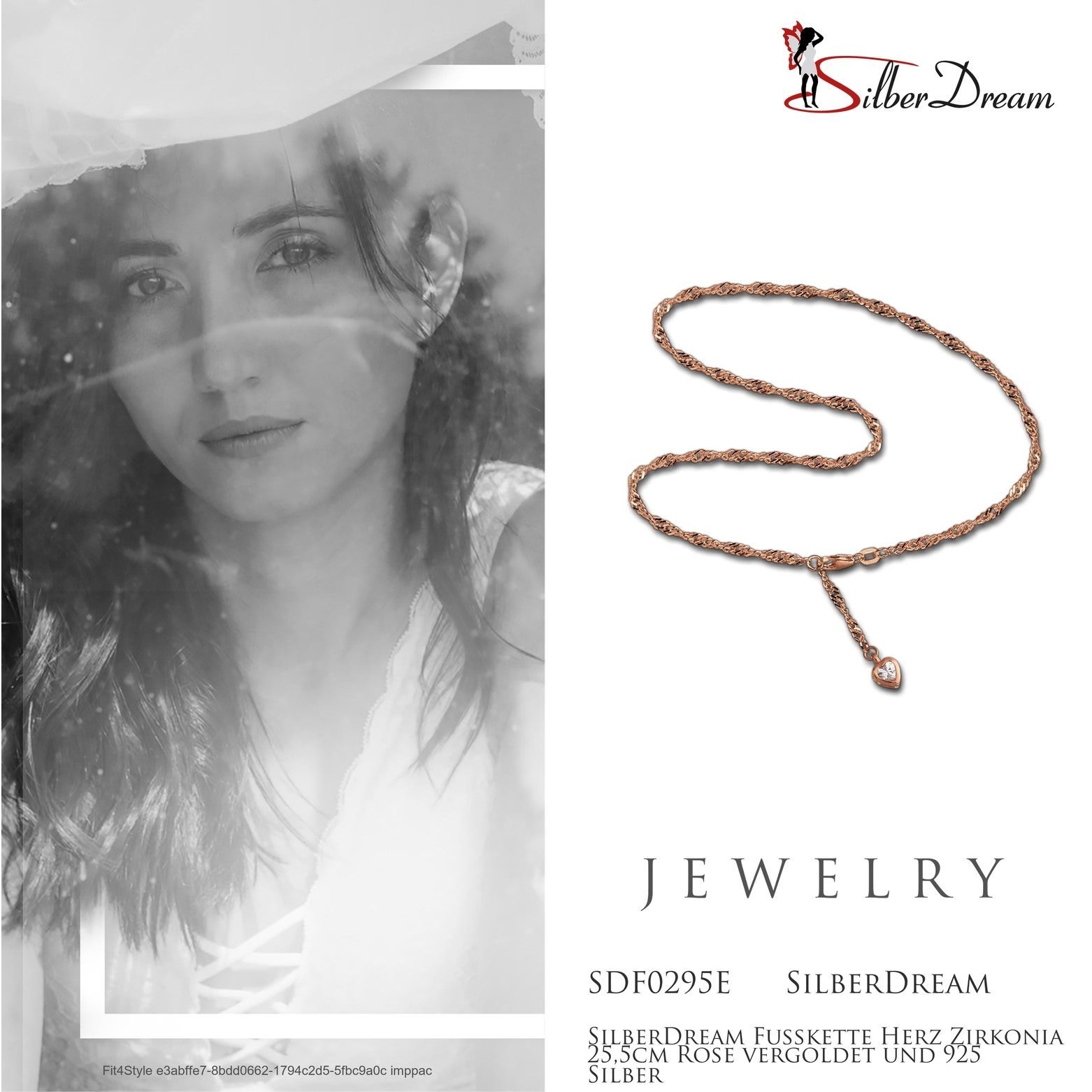 Eine SilberDream Marken-Fußketten Herz mit der Bestellnummer SDF0295E für Damen in der Farbe rose weiß. Der Fußschmuck aus der SilberDream Kollektion ist aus 925 Sterling Silber vergoldet Roségold 333 und hat einen Karabiner kann man bei ca. 23,5cm und 25,5cm einhängen-Verschluss.