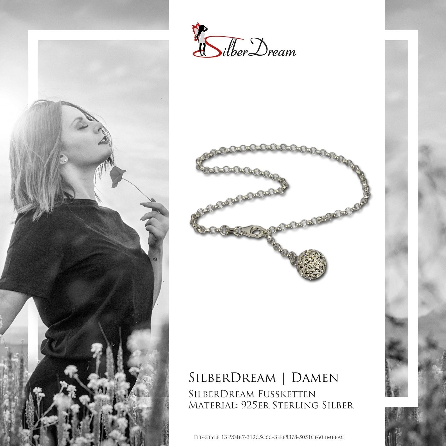 SilberDream 25cm Fußkette Damen silber gold glitzer Kugel Echt Silber SDF010W