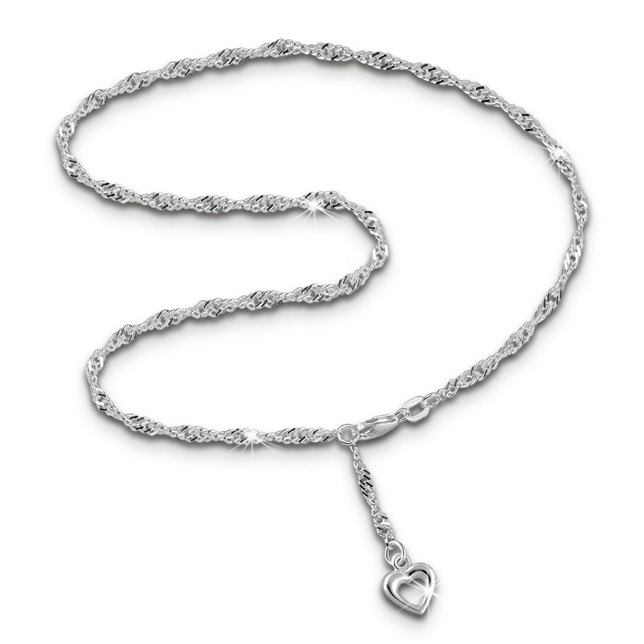 Eine SilberDream Marken-Fußketten Herz mit der Bestellnummer SDF0345J für Damen in der Farbe silber. Der Fußschmuck aus der SilberDream Kollektion ist aus 925 Sterling Silber und hat einen Karabiner einhängbar bei 23cm und 25cm-Verschluss.