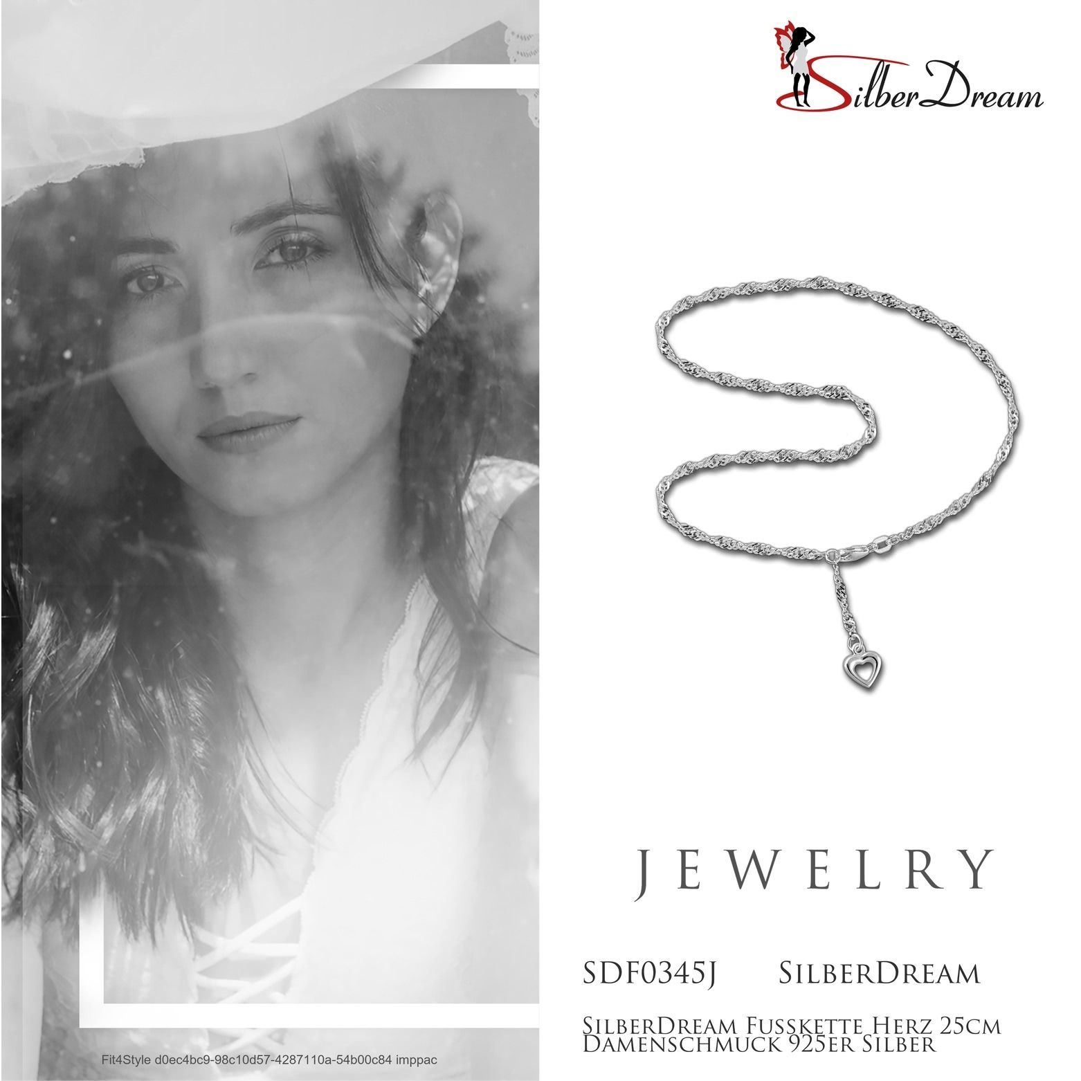 SilberDream 25cm Fußkette für Damen silber allergenfrei Herz Echt SDF0345J