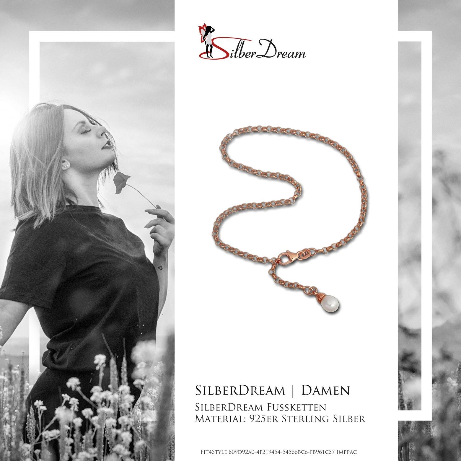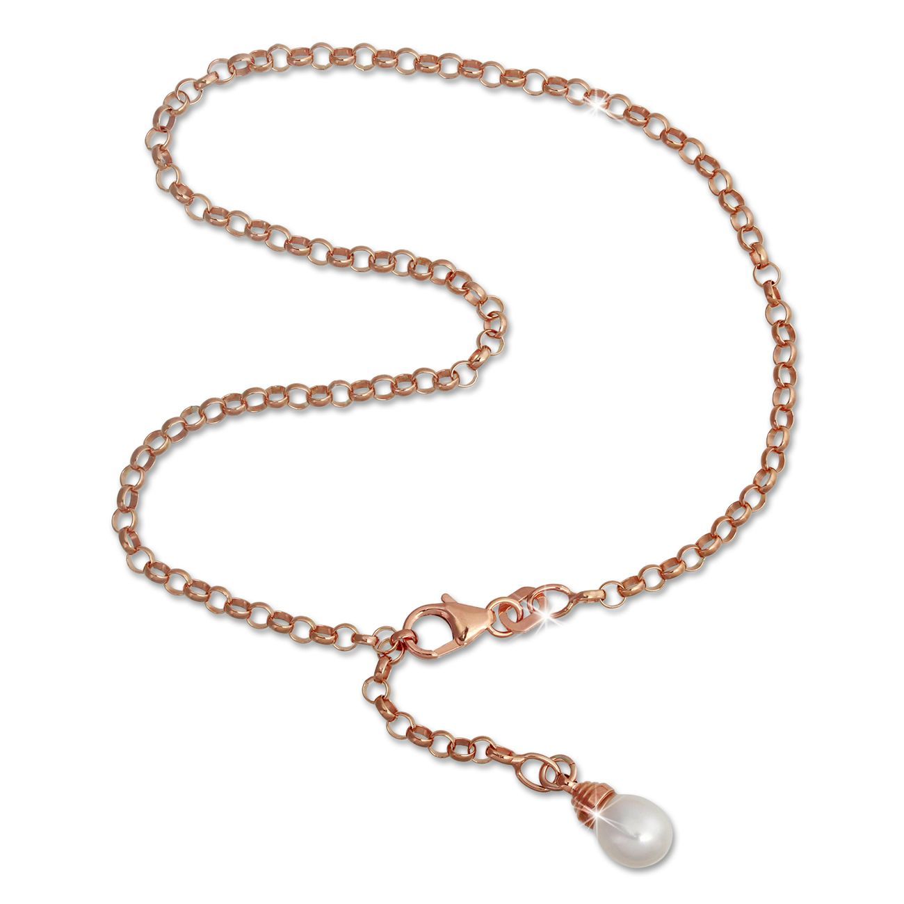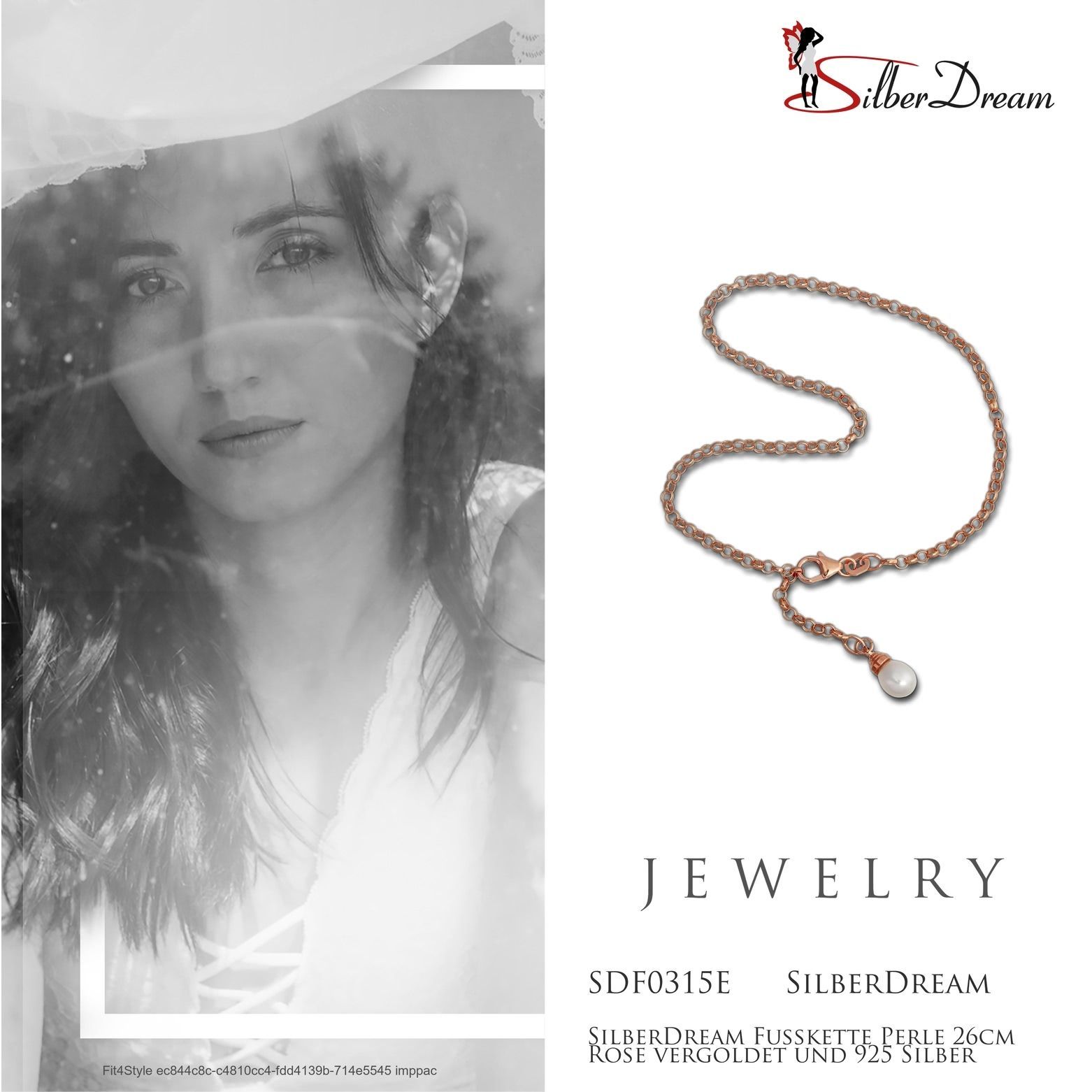 Eine SilberDream Marken-Fußketten mit der Bestellnummer SDF0315E für Damen in der Farbe rose weiß. Der Fußschmuck aus der SilberDream Kollektion ist aus 925 Sterling Silber vergoldet Roségold 333 und hat einen Karabiner kann man überall einhängen-Verschluss.