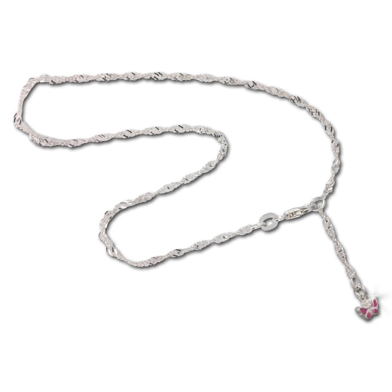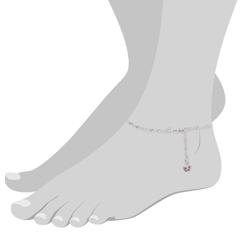 Eine SilberDream Marken-Fußketten Schmetterling mit der Bestellnummer SDF017A für Damen in der Farbe rosa. Der Fußschmuck aus der SilberDream Kollektion ist aus 925 Sterling Silber und hat einen Karabiner einhängbar bei 24cm und 26cm-Verschluss.