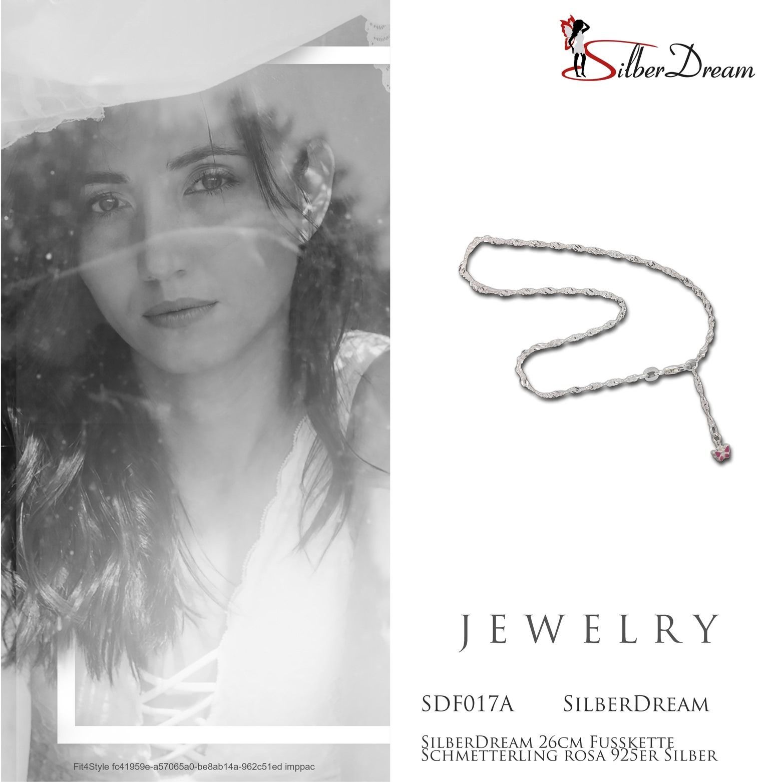 SilberDream 26cm Fußkette für Damen rosa Schmetterling Echt Silber SDF017A