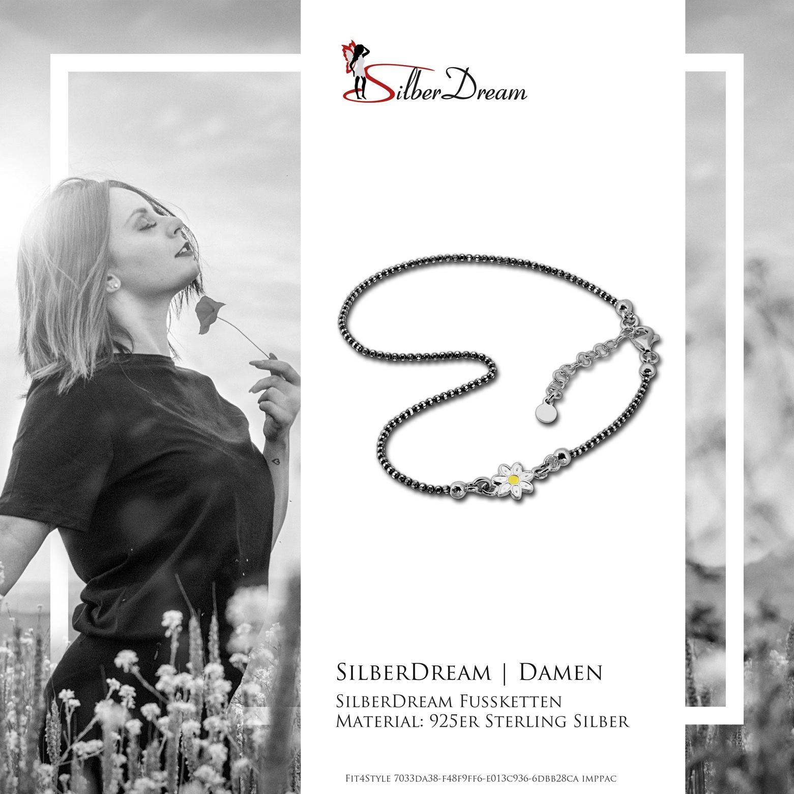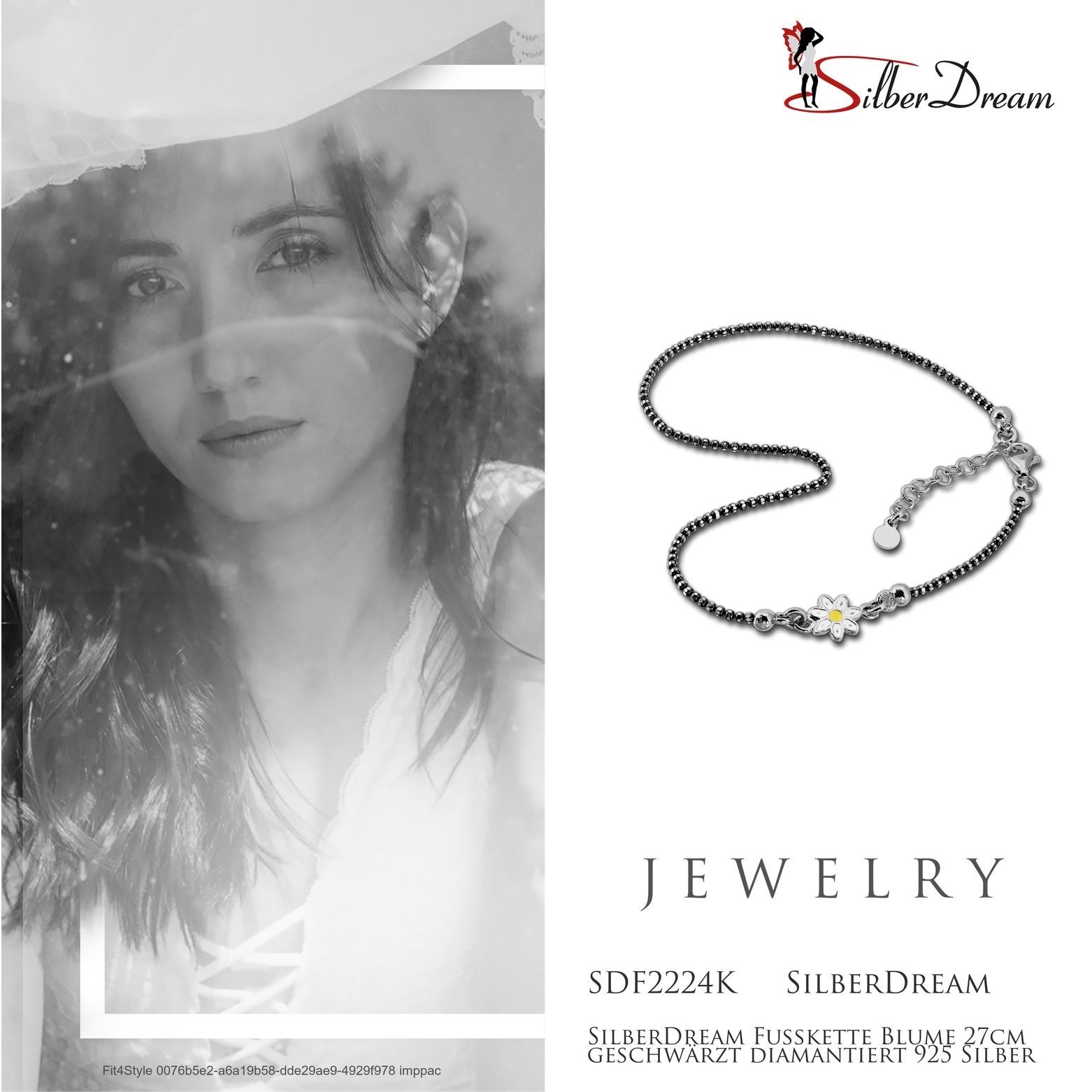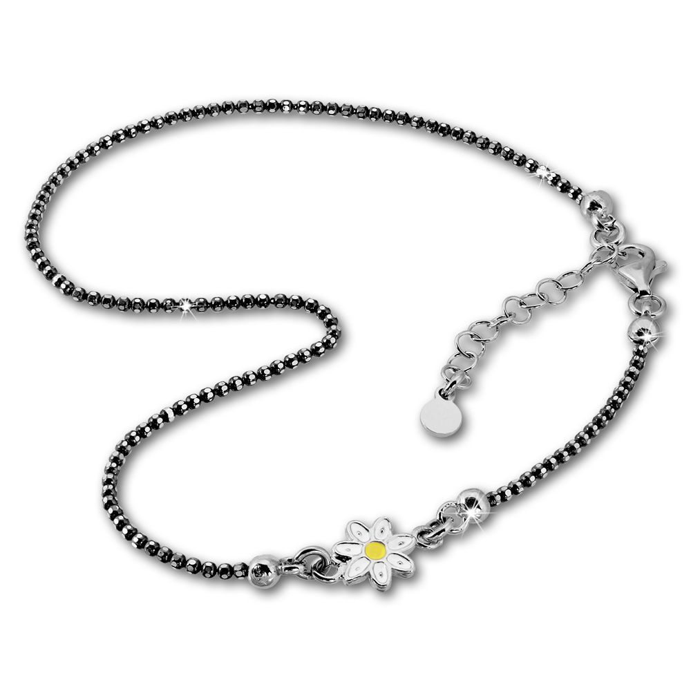 SilberDream 27cm Fußkette Damen weiß gelb geschwärzt Blume Echt Silber SDF2224K