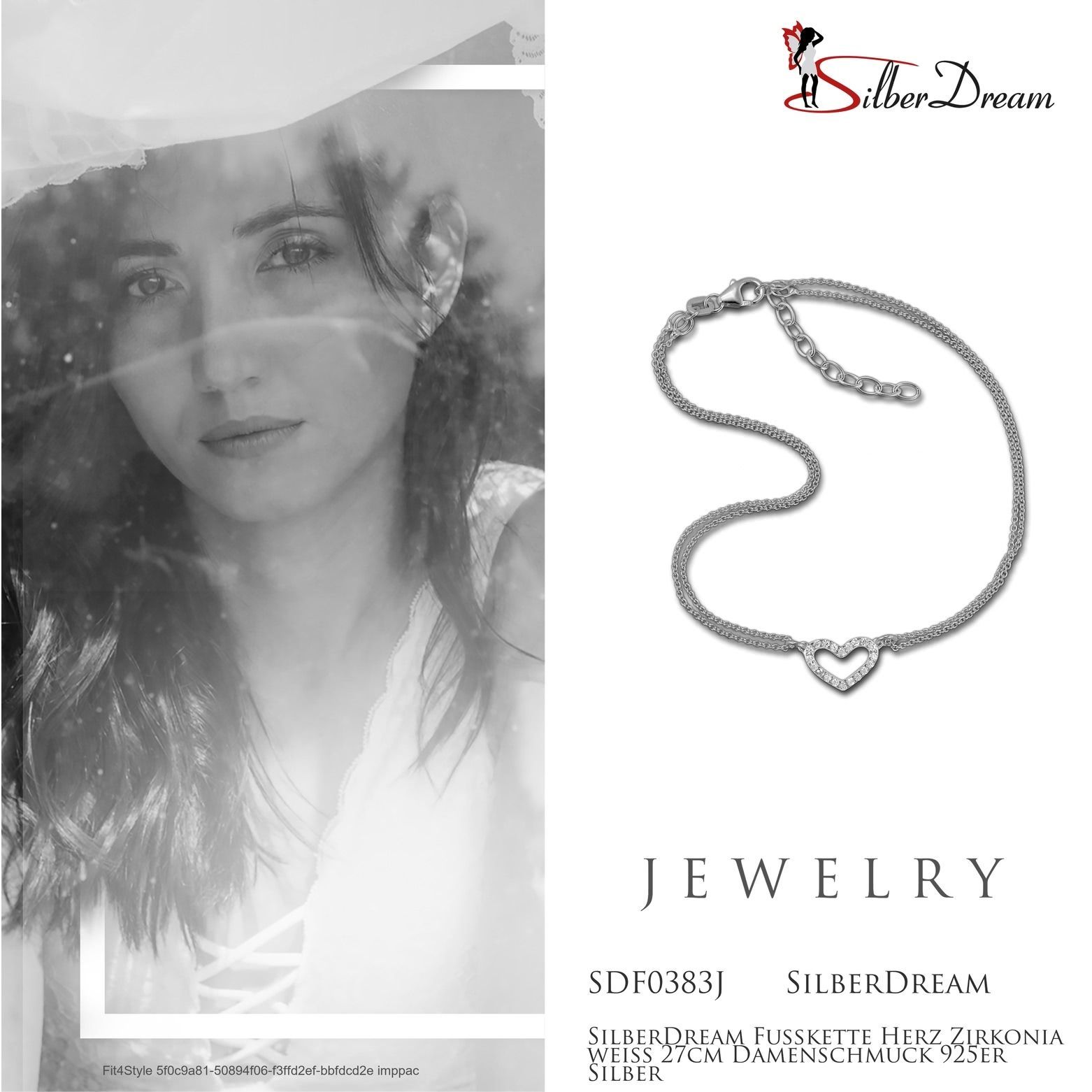 SilberDream 27cm Fußkette Damen weiß glitzer Herz Zirkonia Echt Silber SDF0383J