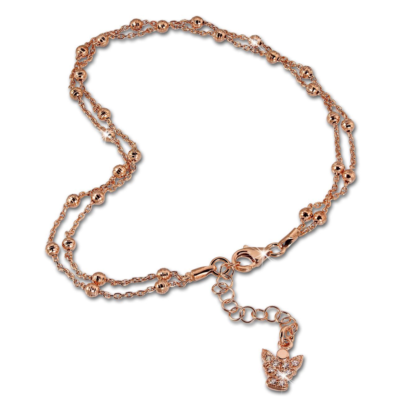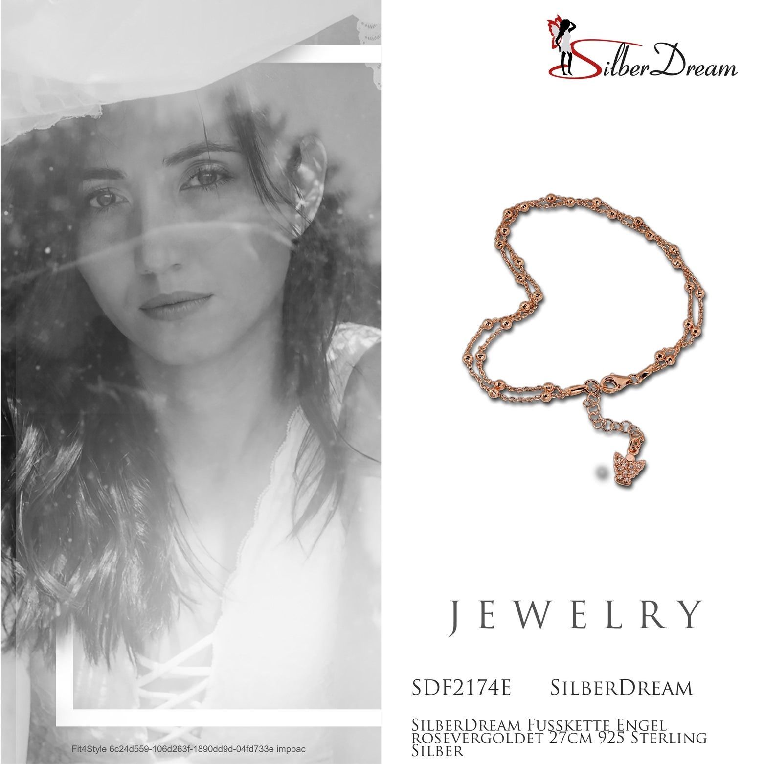 SilberDream 27cm Fußkette für Damen rosevergoldet glitzer Engel Silber SDF2174E