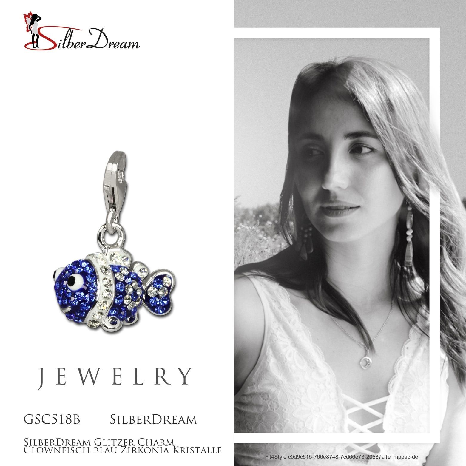 Ein SilberDream Marken-Charmsanhänger Clownfisch mit der Bestellnummer GSC518B für Damen Jugend in blau. Der Zirkonia Charm aus der SilberDream Glitzerkollektion ist aus 925er Sterling Silber.