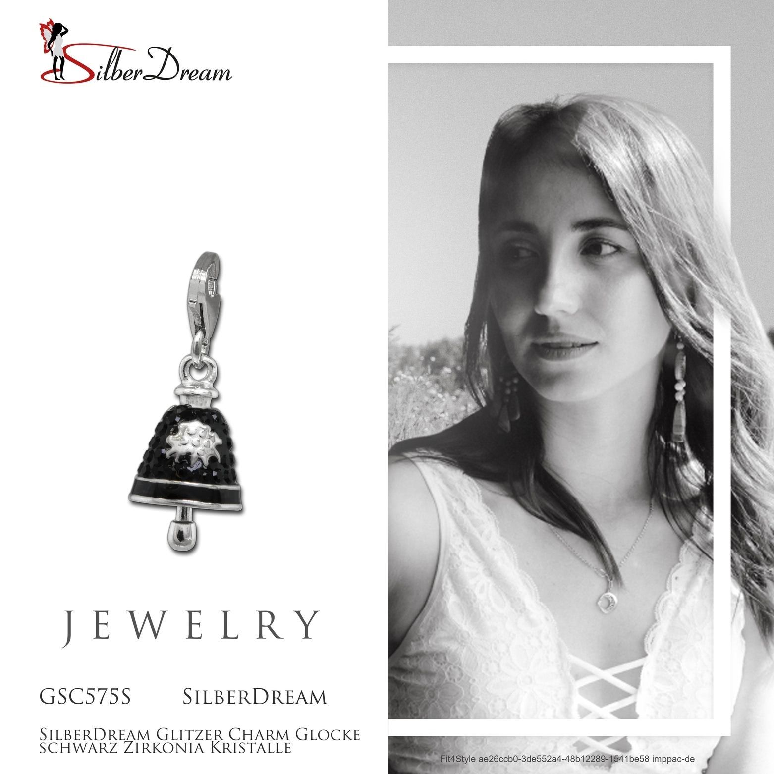 Ein SilberDream Marken-Charmsanhänger Glocke mit der Bestellnummer GSC575S für Damen Jugend in schwarz. Der Zirkonia Charm aus der SilberDream Glitzerkollektion ist aus 925er Sterling Silber Emaille.