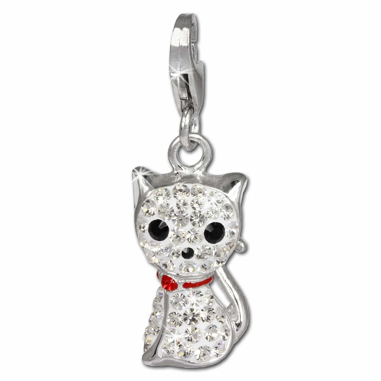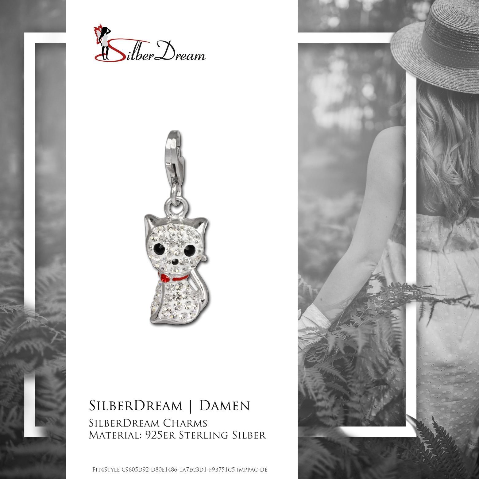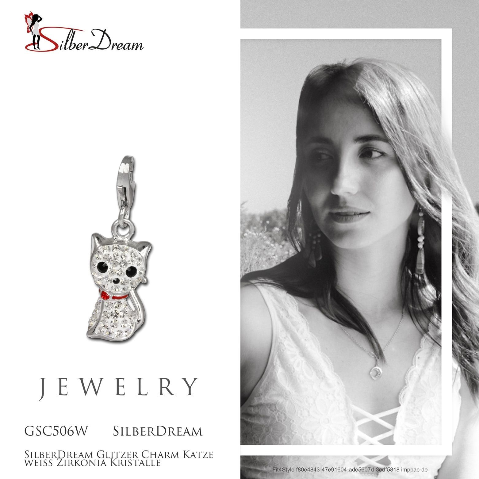 SilberDream Damen Charm Katze Zirkonia weiß Charmsanhänger 925 Silber GSC506W