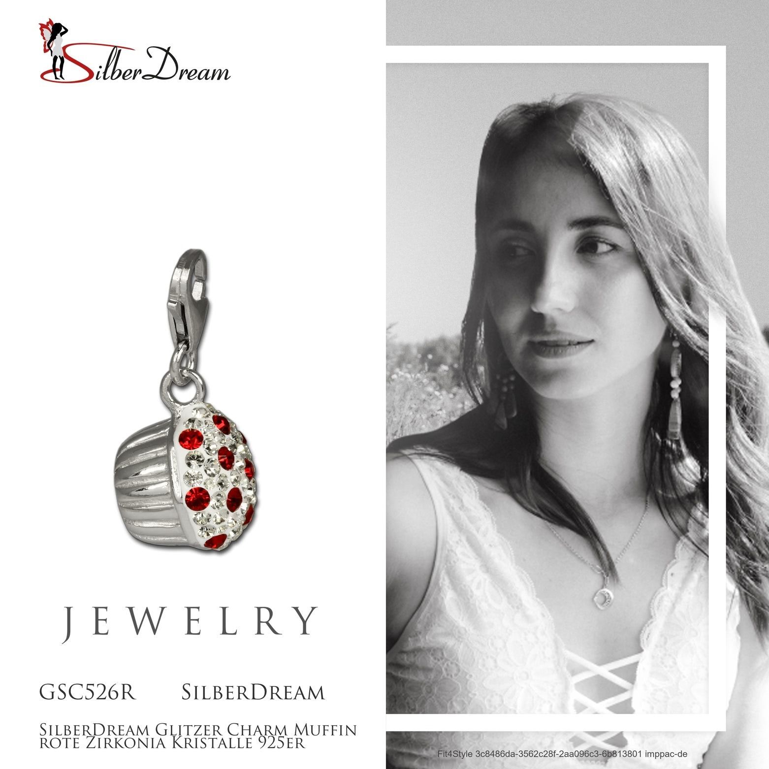 SilberDream Damen Charm Muffin Zirkonia rot Charmsanhänger 925 Silber GSC526R