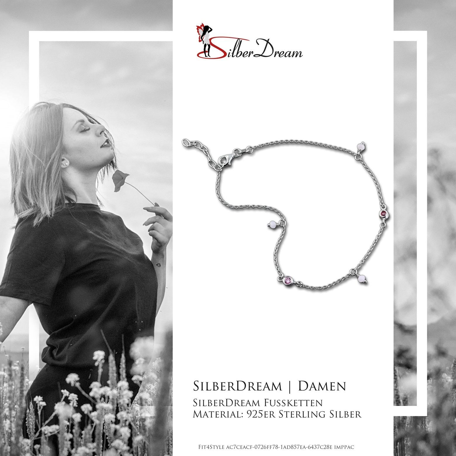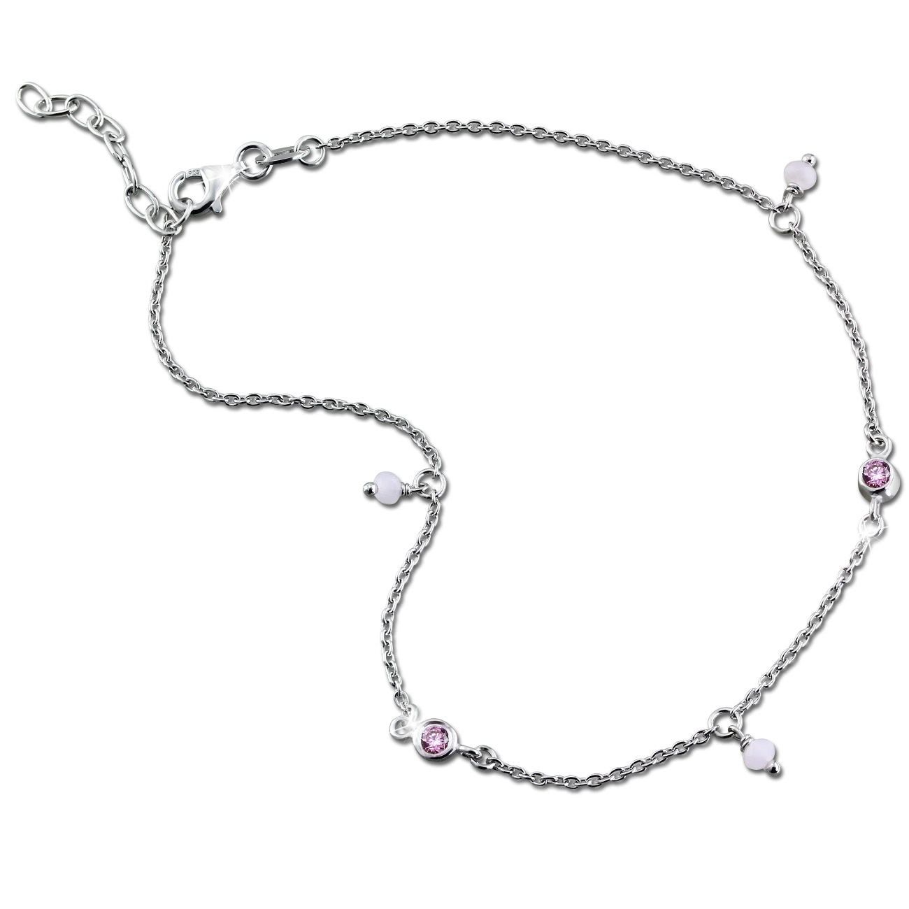 SilberDream Fußkette 925 Silber 25cm Perlen Damen Zirkonia rosa silber SDF5105A