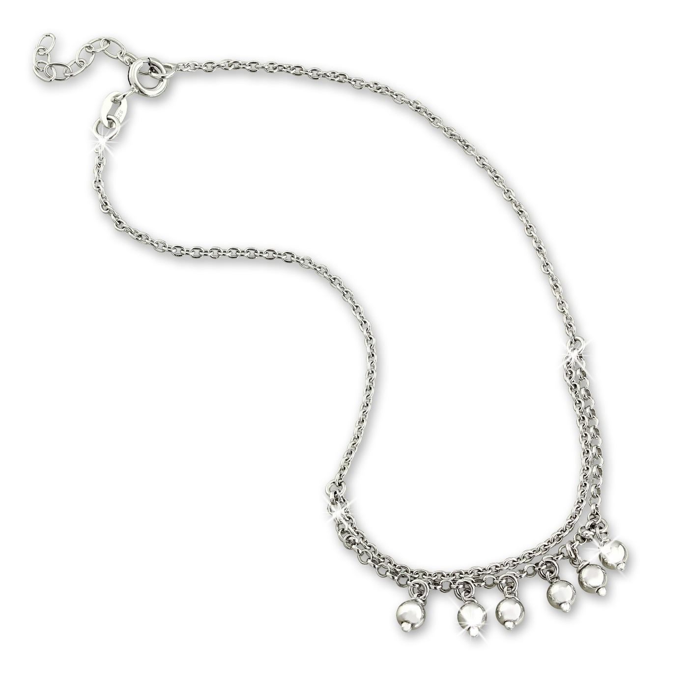 Eine SilberDream Marken-Fußkette Dangle mit der Bestellnummer SDF5195J für Damen in der Farbe silber. Der 925 Sterling Silber Fußschmuck ist ca. 25cm lang und hat einen Federring-Verschluss.