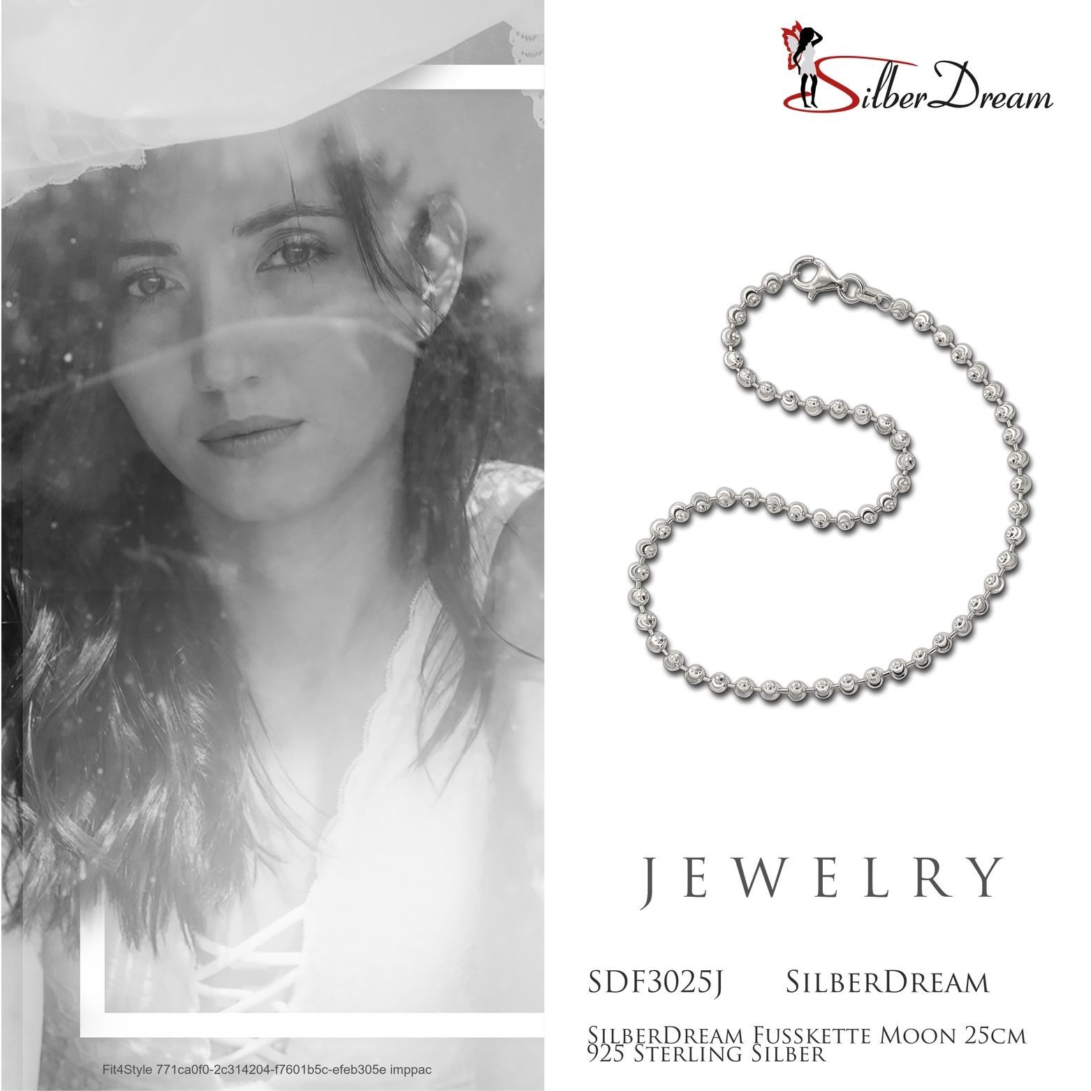 Eine SilberDream Marken-Fußkette Moon mit der Bestellnummer SDF3025J für Damen. Der Fußschmuck aus der SilberDream Kollektion ist aus 925 Sterling Silber und hat einen Karabiner-Verschluss.