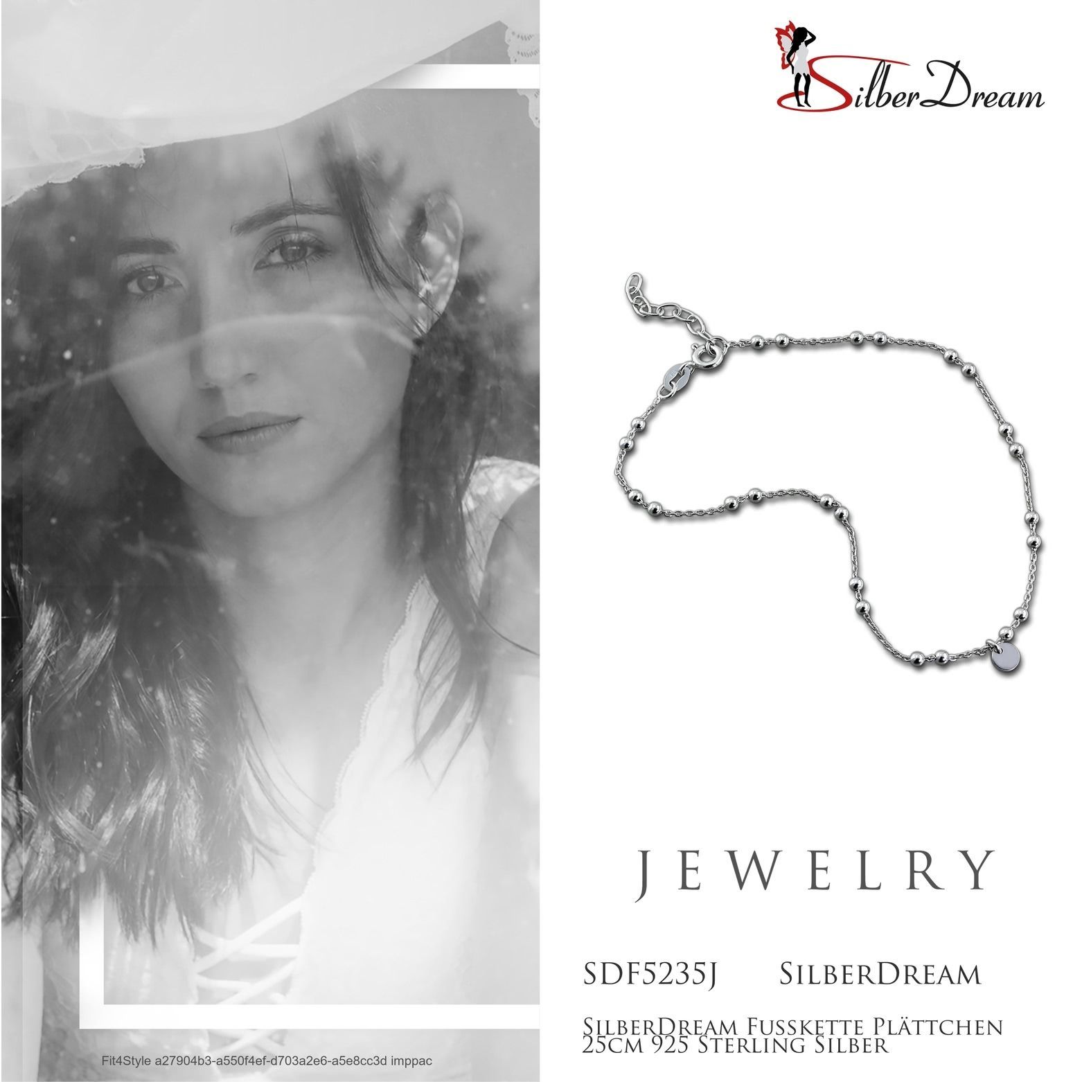 SilberDream Fußkette 925er SILBER 25cm Plättchen Damen Echt-Schmuk SDF5235J