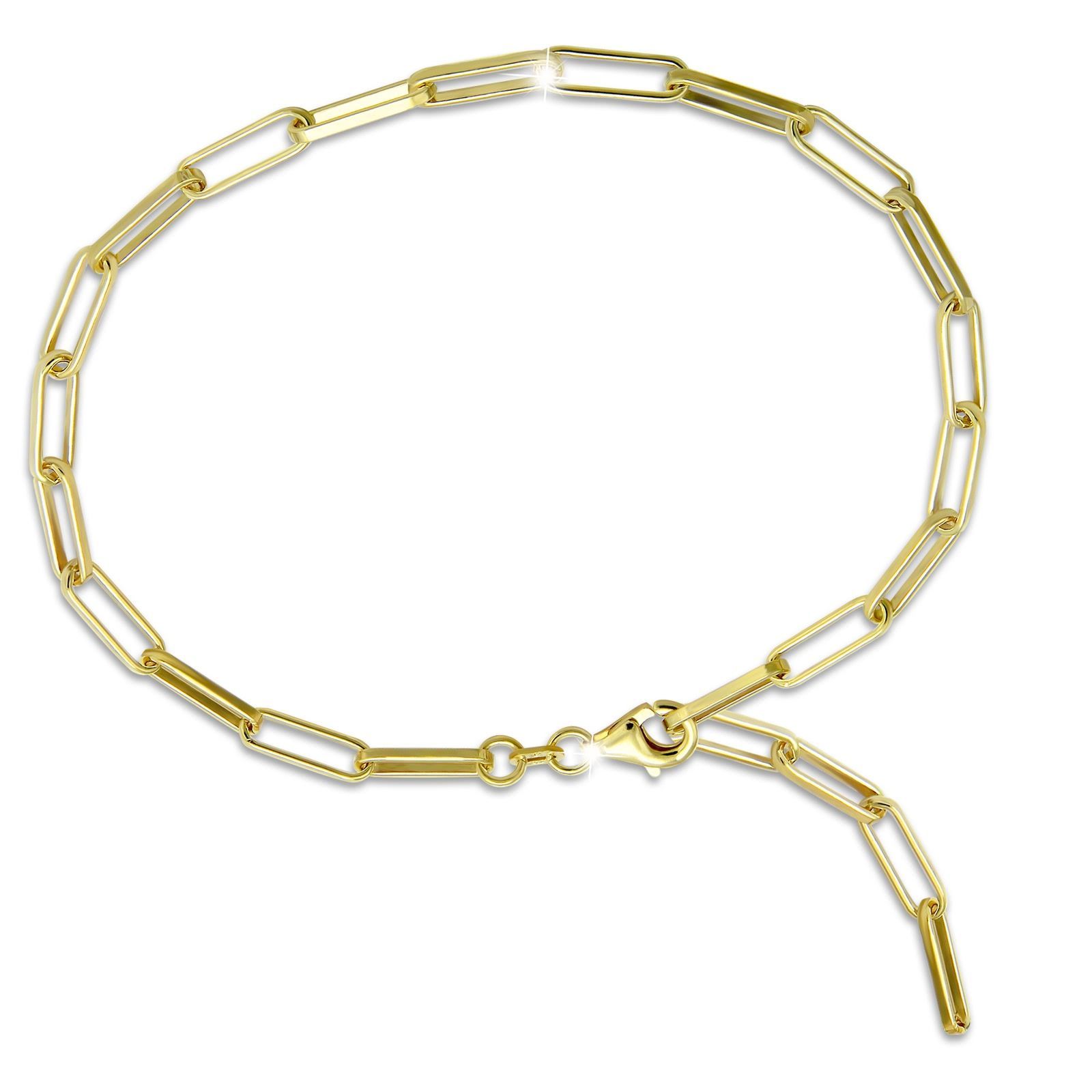 Eine moderne, vergoldete Fußkette aus glänzenden Gliedern in einer Länge von 28cm mit einem Karabinerverschluss. Die ovalen Kettenglieder sind poliert und können überall in den Karabiner eingehängt werden. Es ist aus der einzigartigen SilberDream Schmuck Kollektion und aus allergenfreiem, anlaufgesc