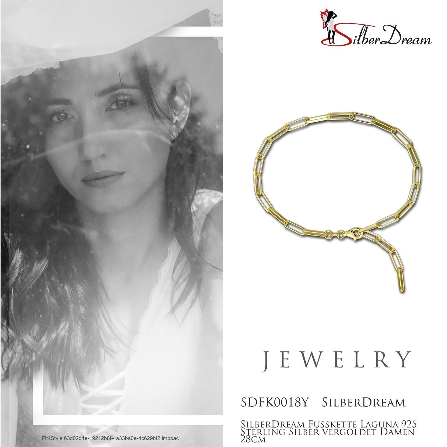 SilberDream Fußkette Laguna 925 Sterling Silber vergoldet Damen 28cm SDFK0018Y