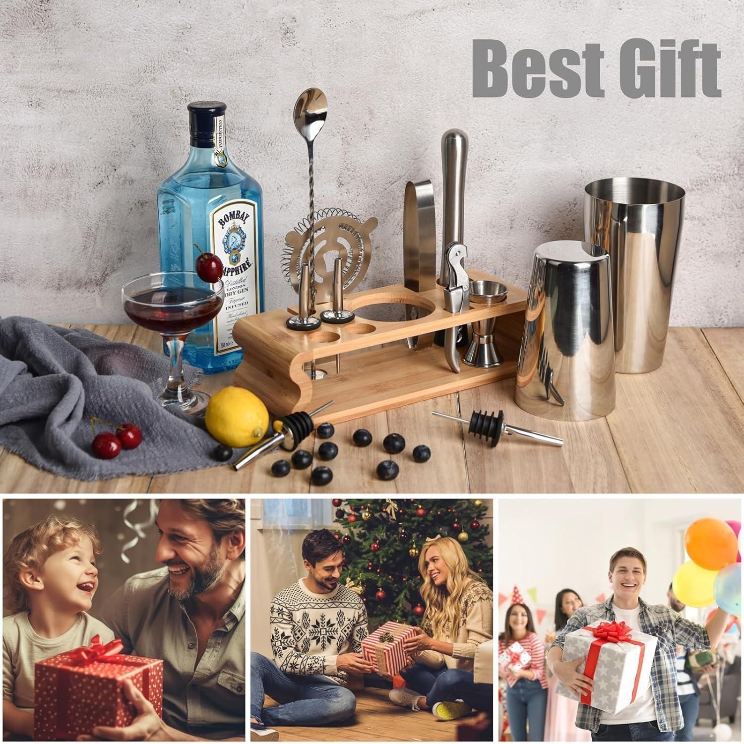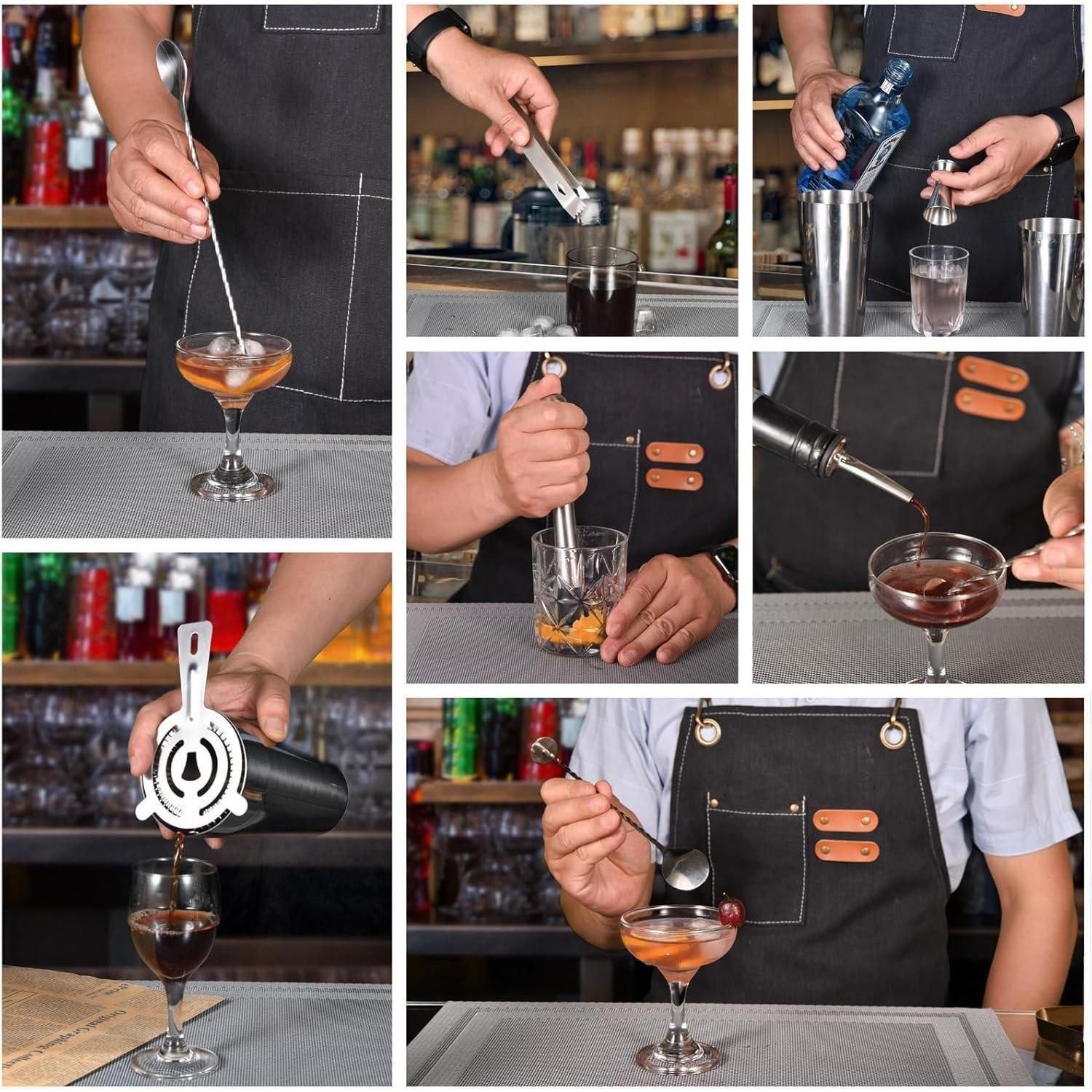 Silbernes Edelstahl Cocktail Shaker Set 550ML/750ML 12tlg Bar Tool Kit