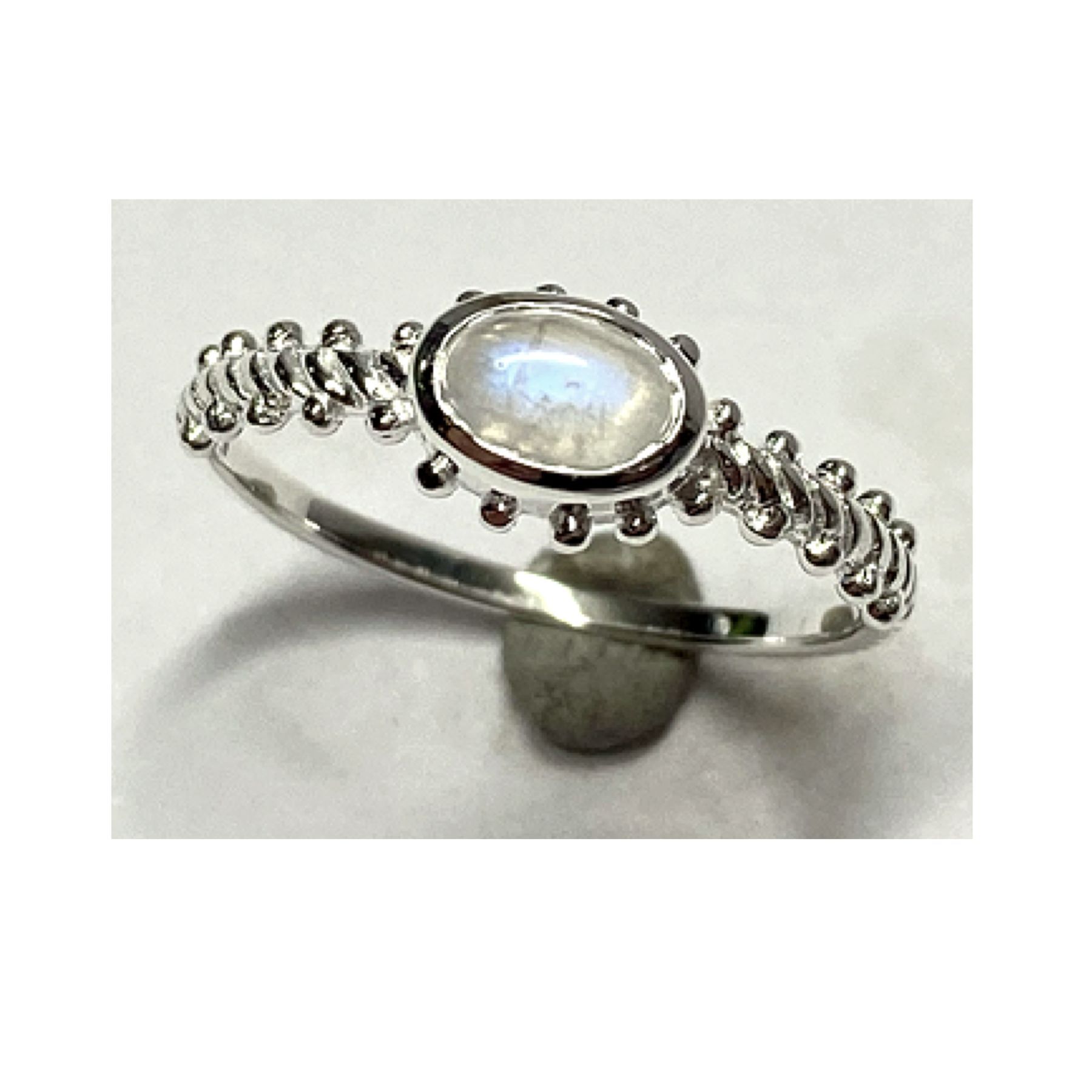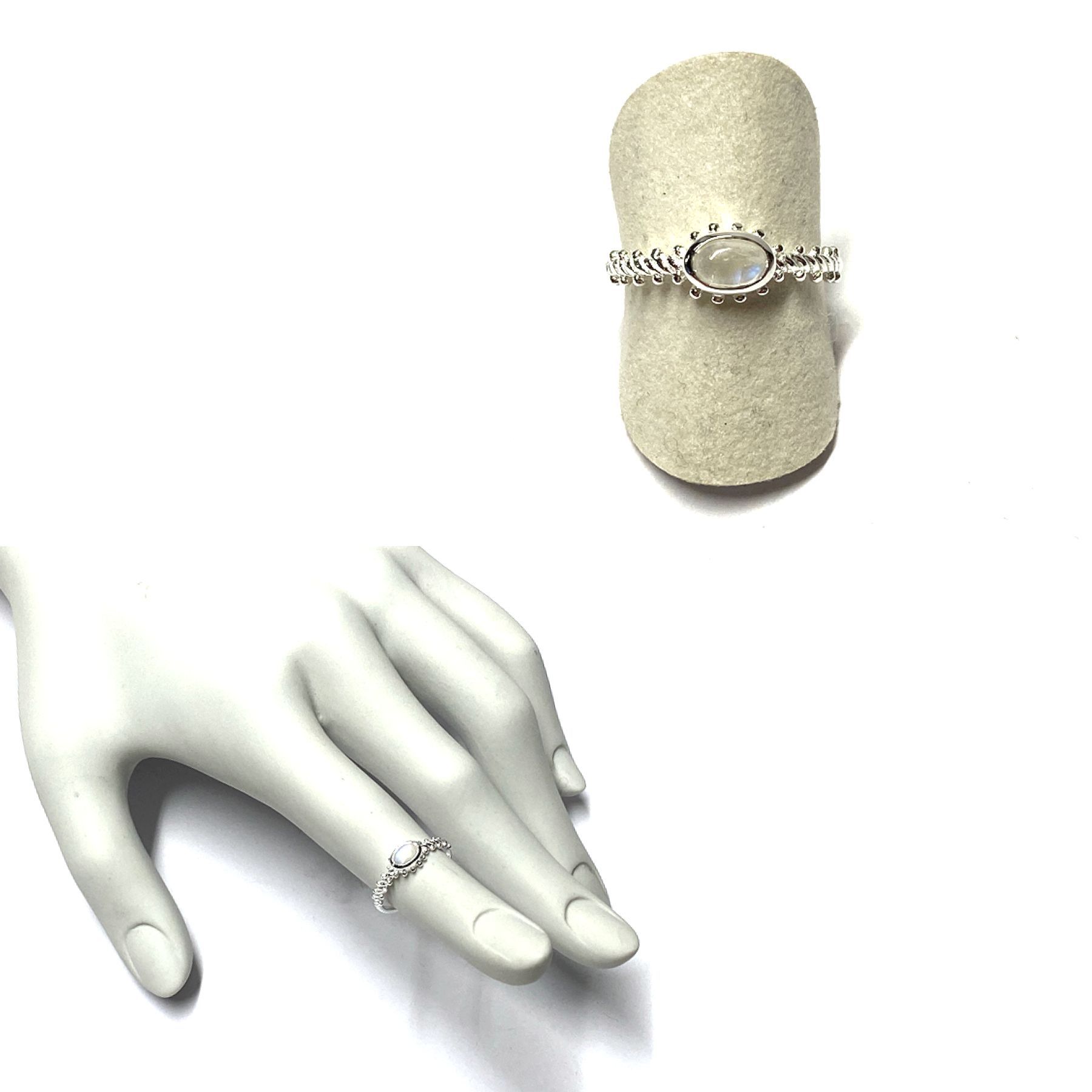 Silberring 925/- Mondstein oval schmal dezent Muster #55