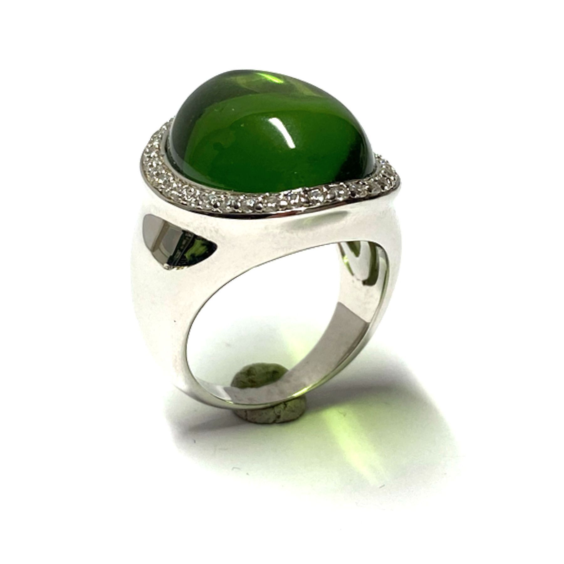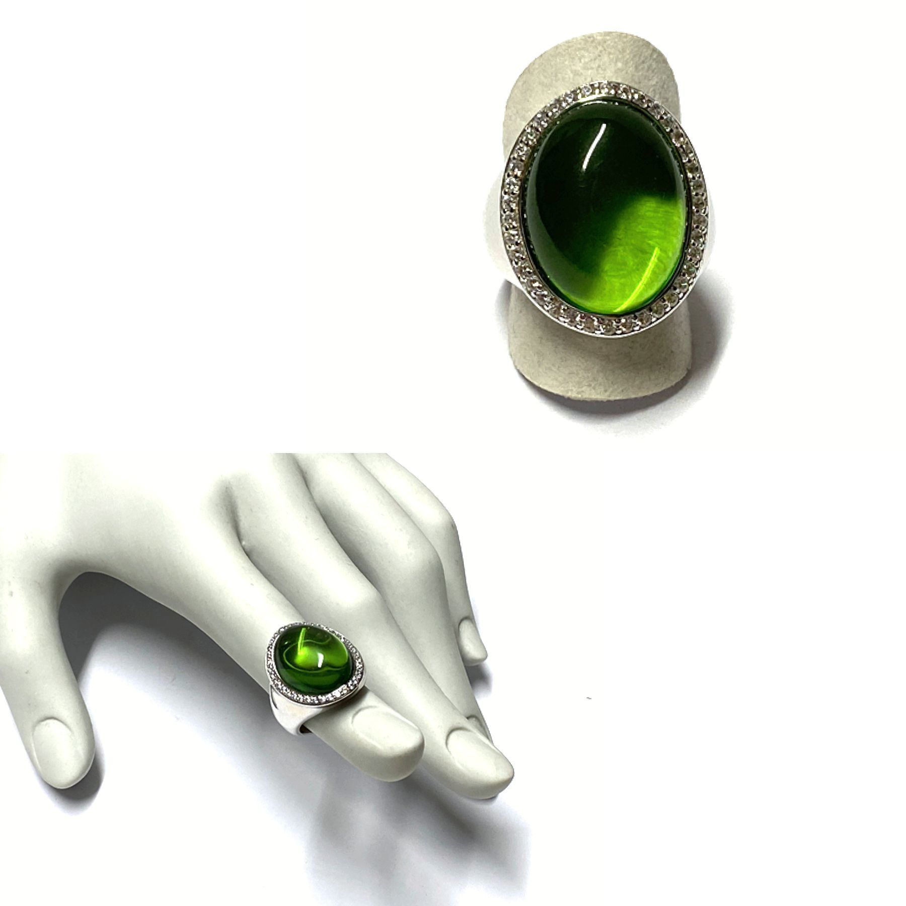 Silberring 925/- rhodiniert Bernstein grün (karibischer Bernstein) + Zirkonia #54