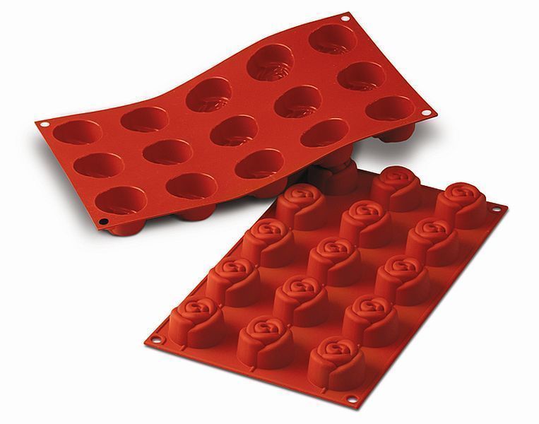 Silikon Backform 15 x Rose 44 x 27 mm in Gastronomie-Qualität