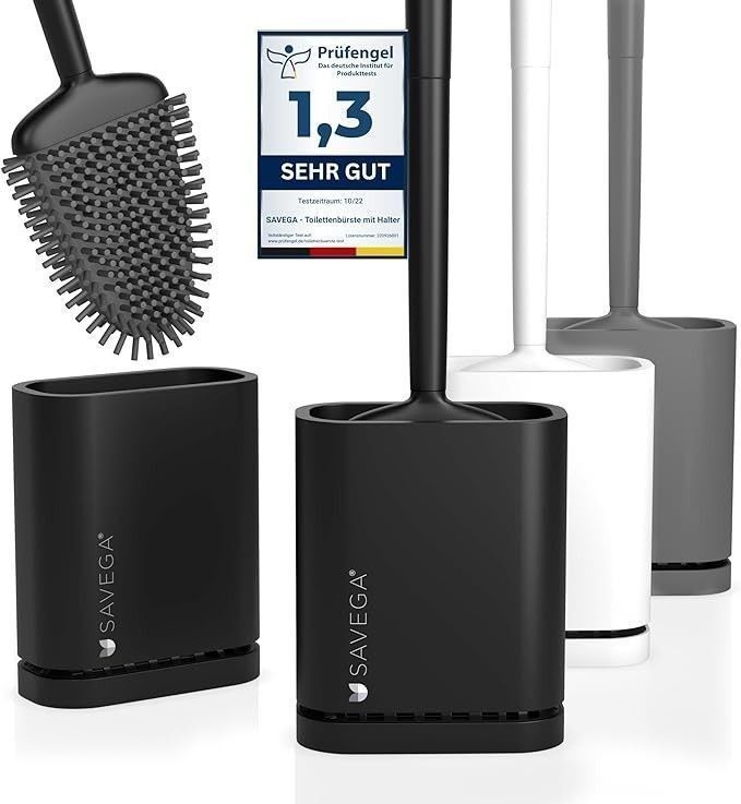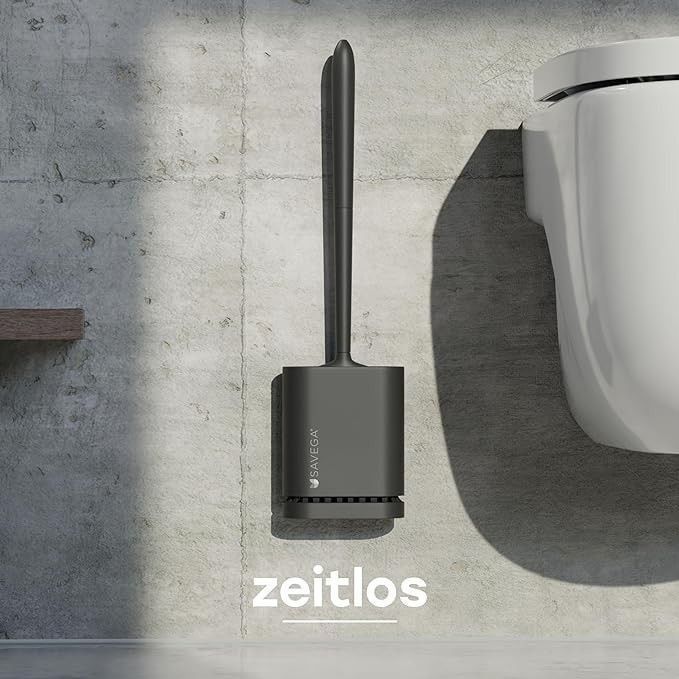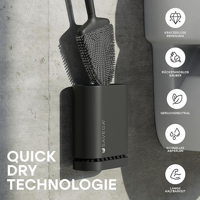 Silikon Klobürste, flexibel & schnell trocknend, Wandmontage ohne Bohren, schwarz