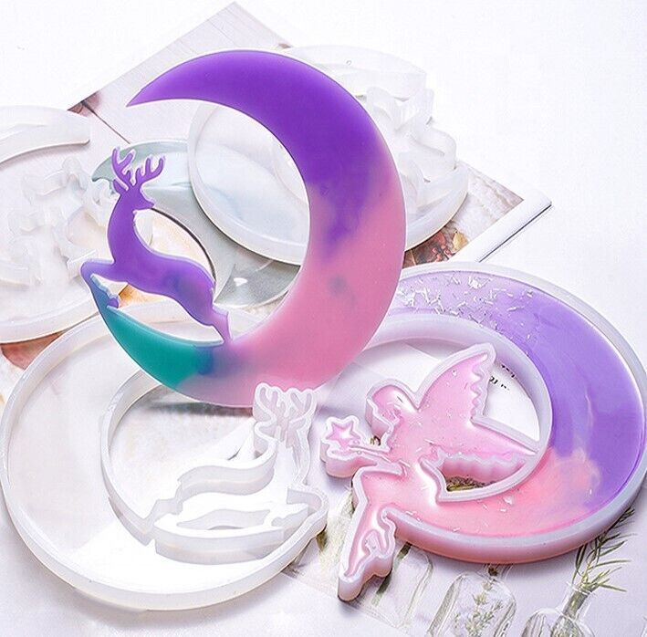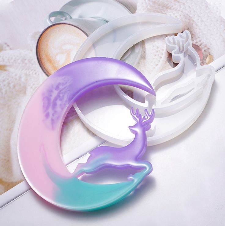 Silikonform Mond Halbmond Hirsch Anhänger Epoxidharz Gießen Mold Beton Deer